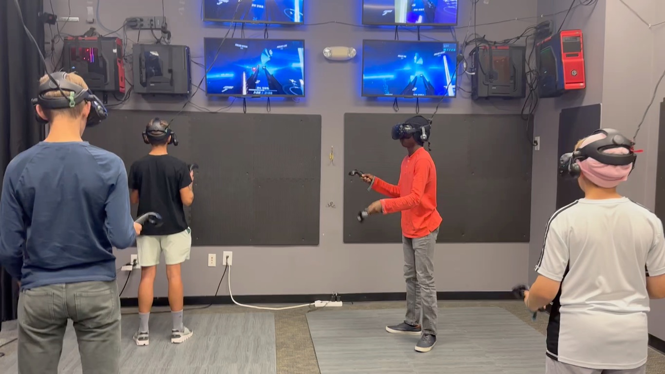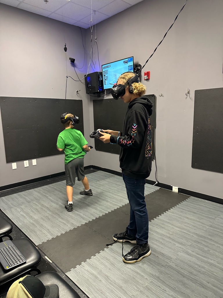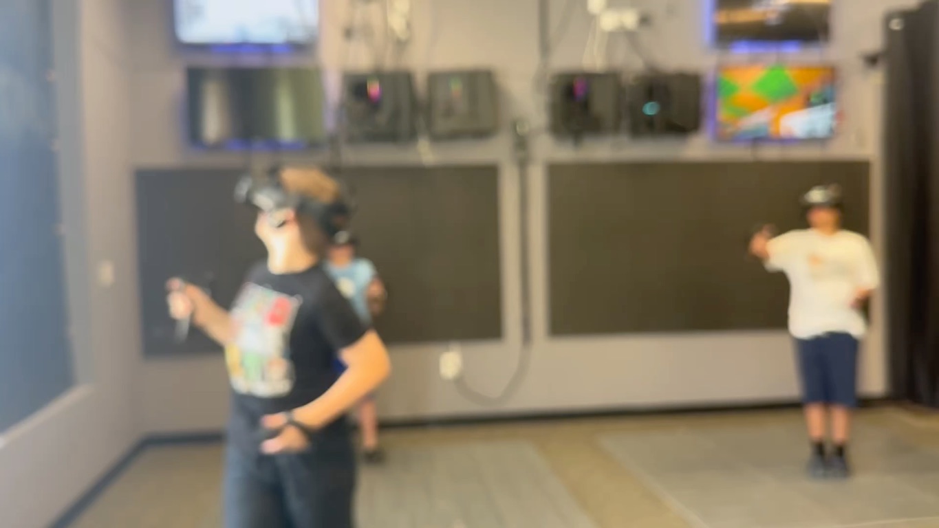 We went to VR yesterday for my birthday party. We played Beat Saber, Sky Front, Cowbots v.s. Aliens, and Battle Magic. Afterwards, we went and had pizza and cake at Blaze.