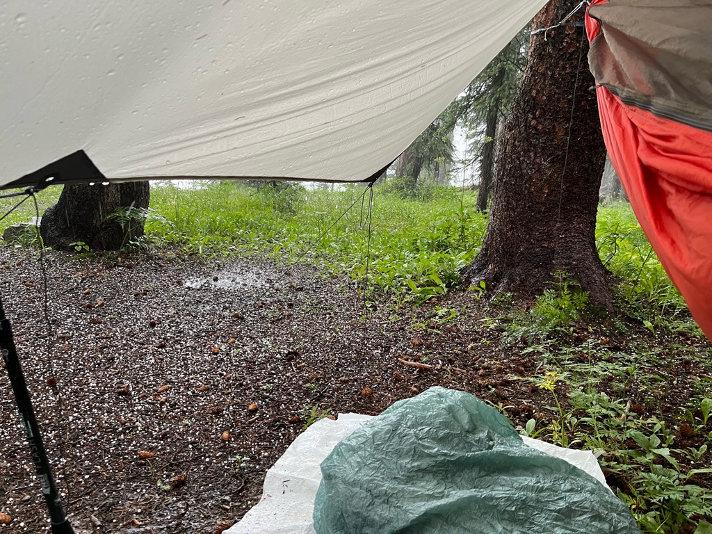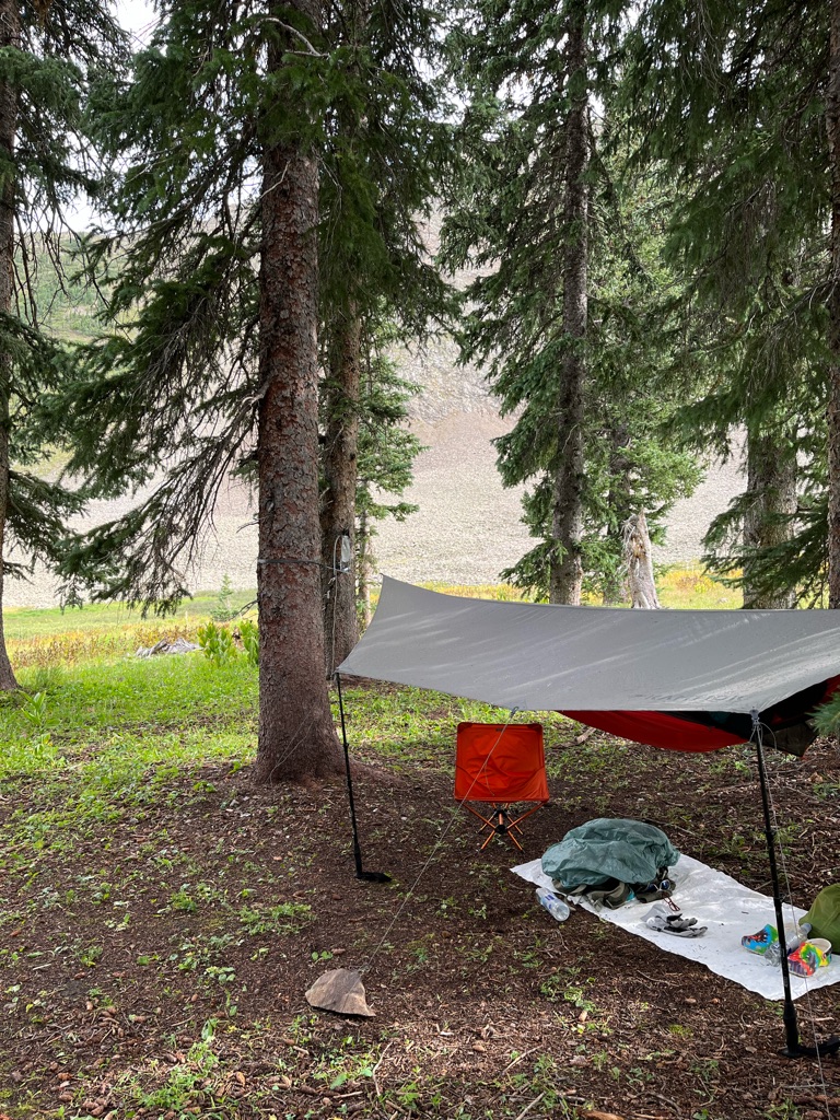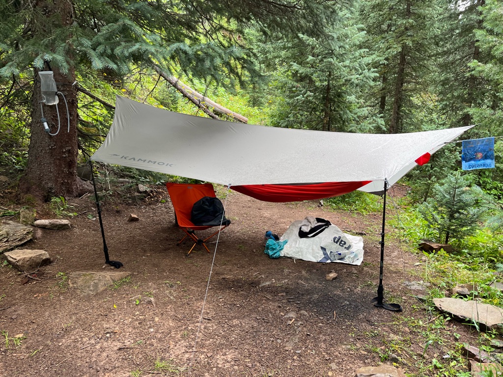 The 4.5 hour drive was pretty uneventful. \240As usual as soon as I crossed the state line into Colorado the landscape turned greener, more mountainous, and the road improved. \240I arrived at Little Molas Lake a tad after 3. \240Ah Colorado…land of Granolas, Hippies, and folks who don’t have a clue what to do with there money. \240(I wish I could be one of them!) AND where you can arrive at any given campsite on a Tuesday and find it full. \240I drove around twice and saw camp setups at every spot. \240Just as I was about to give up and have to backpack to find a place, I noticed a wonderful spot at the edge of the day use area. \240It was perfect! Shaded, quiet, flat, great views, and a stream 2 feet from my hammock! \240I snagged it and set up.