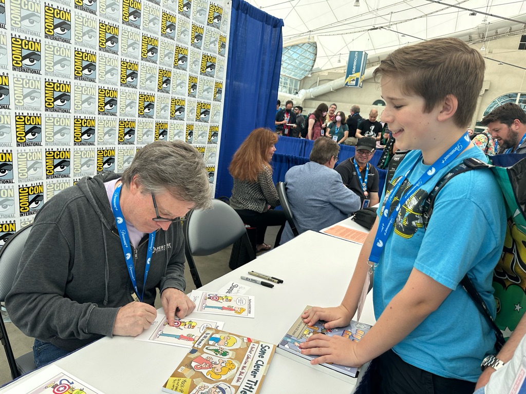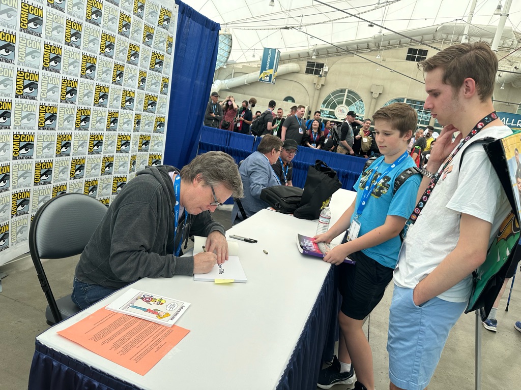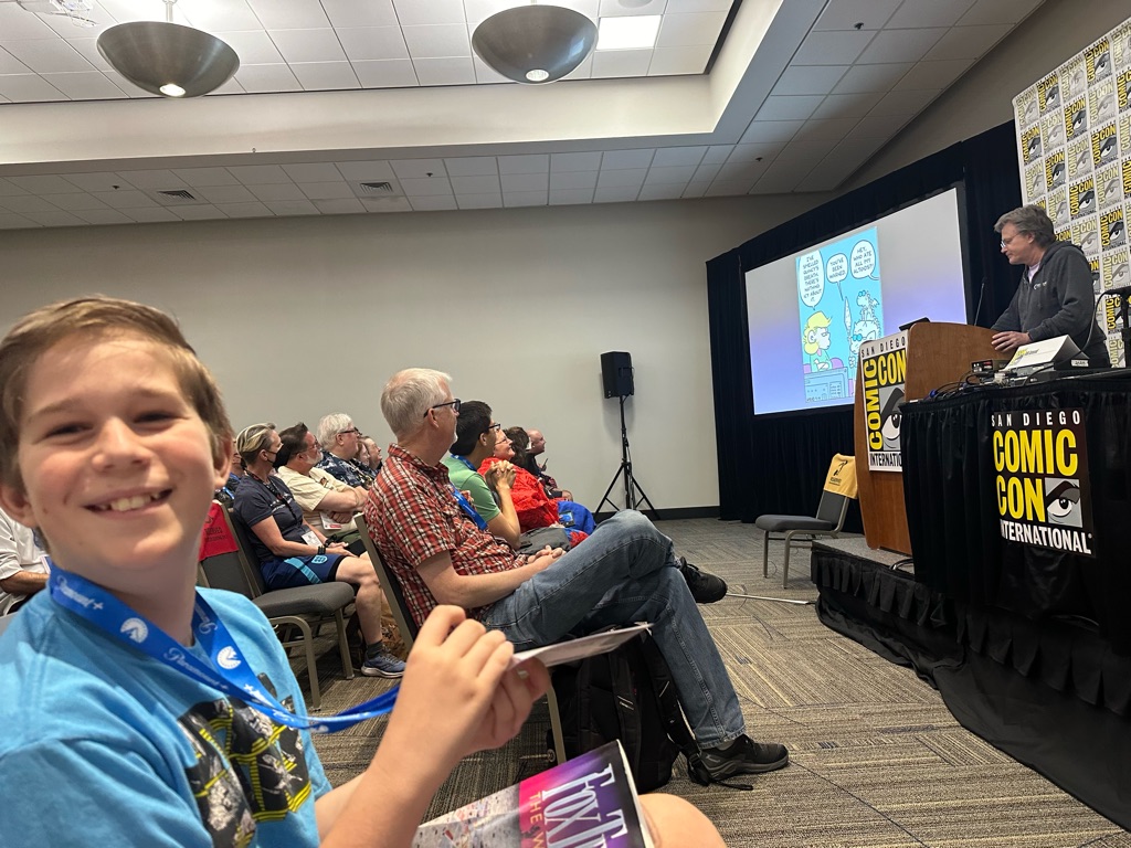 We got Clark’s child badge (which helped us bypass most of the line), picked up our bags and headed to 6a to line up for the WWE panel. We waited outside for about 40 mins, but ran into Mike who was about 10 people ahead of us!