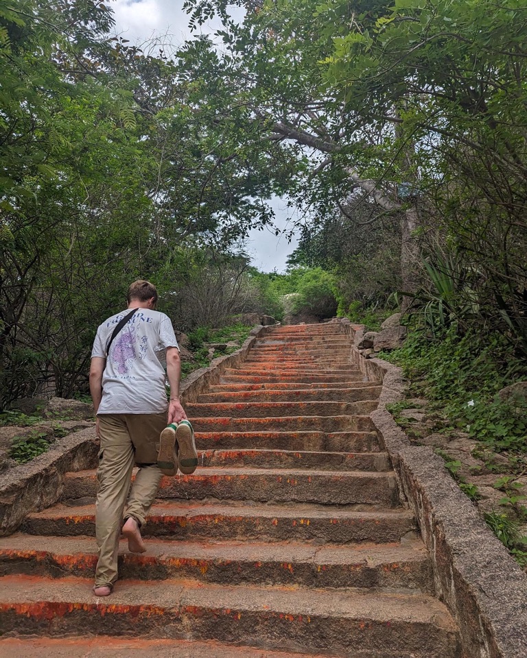 Afterwards aravind and Vijay left us to return to Bengaluru. Me and Hugo decided to climb Chamundi hill . A 3,500ft hill with a Tempe at the top. There’s 1001 steps to the peak and devotees will carry dye and mark every step on their pilgrimage to the top.