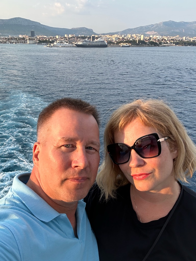 Viimeinen päivä Splitissä. Hotellihuone piti luovuttaa klo 10.30. Laiva Italiaan lähtisi vasta illalla joten meillä oli aikaa hengata Splitiin keskustassa. Kävimme syömässä kalaravintolassa ja kahvilla ranta-aukealla.