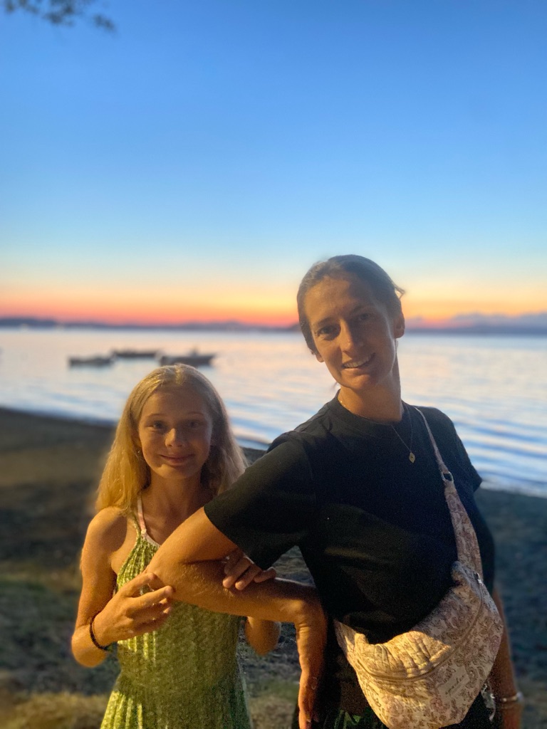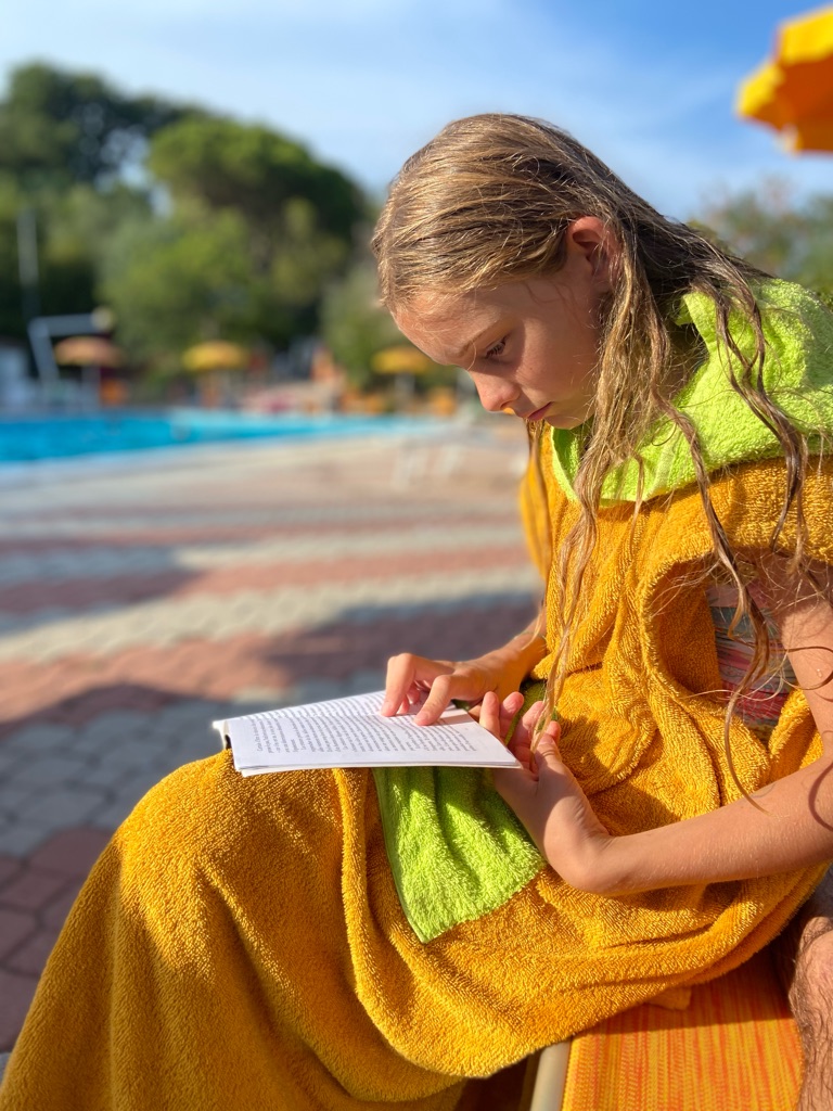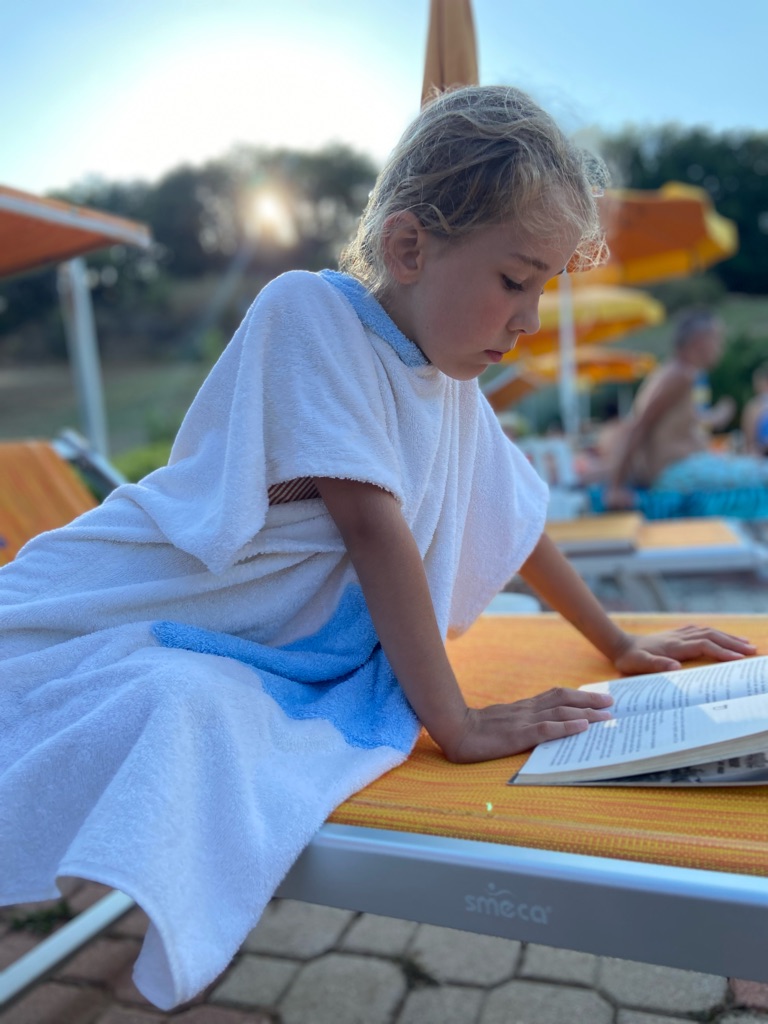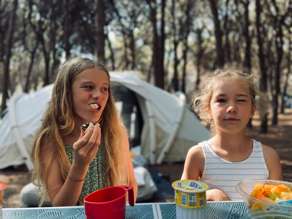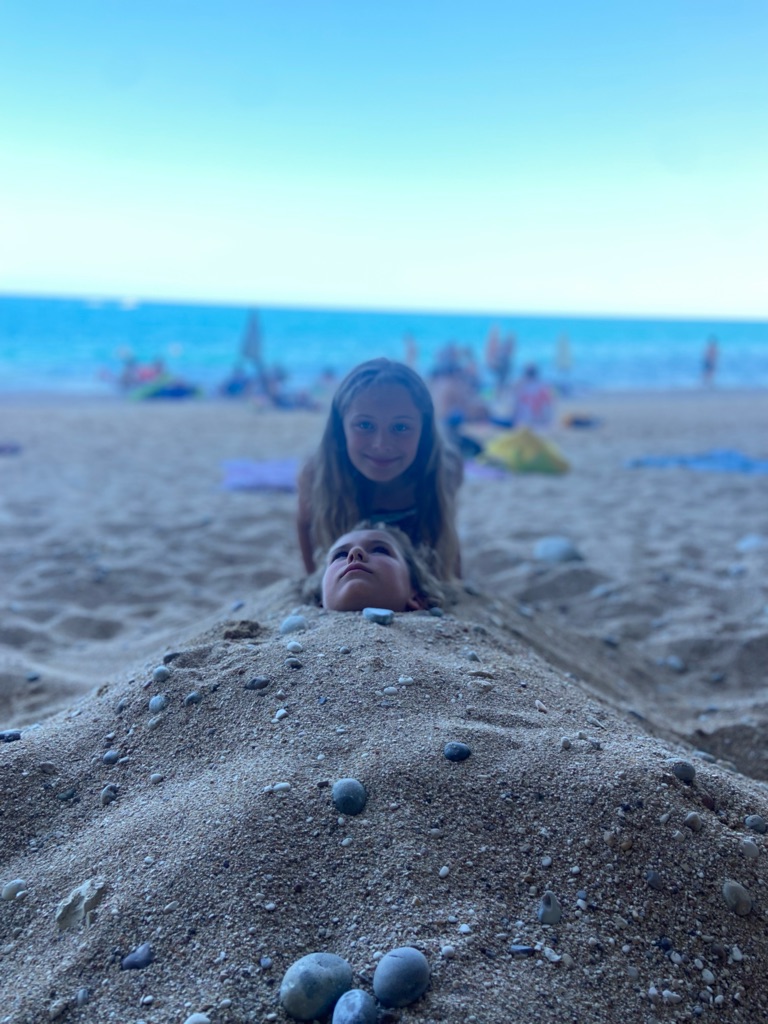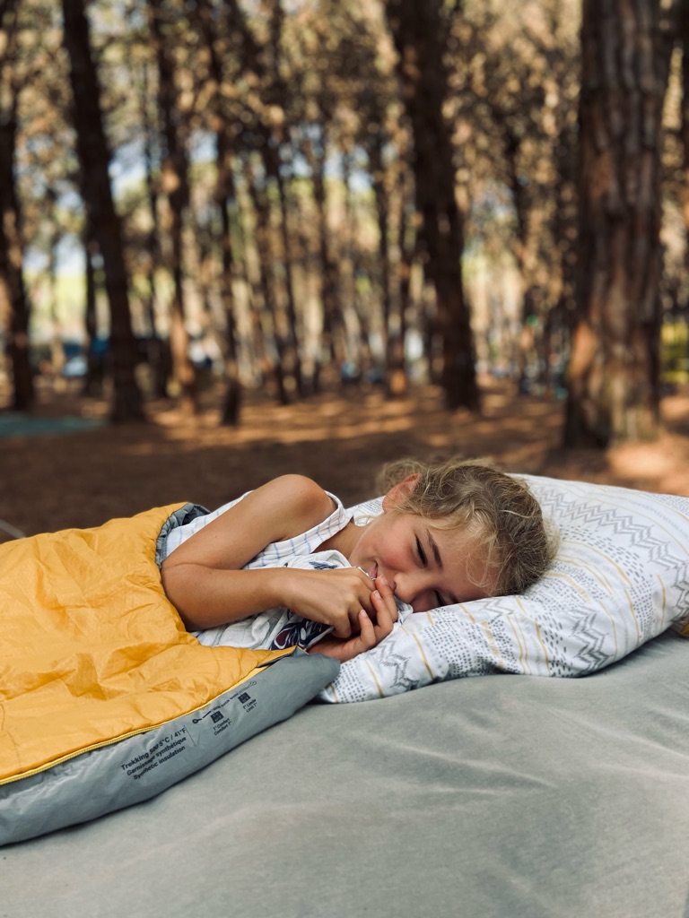 Rose et Amandine ont dormi à la belle étoile sous les pains. Réveil en douceur avec la lumière du jour. Il est sept heures. On s’était promis d’aller nager jusqu’à la bouée avec Rose. Elle se réveille avec le sourire de bonne humeur. Prête à en découdre avec la mer.