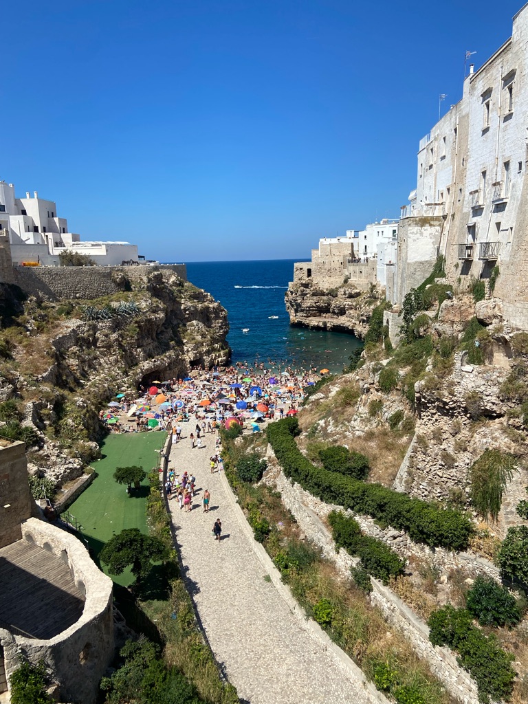 Polignano a mare. Le genre de petite ville aux petites ruelles très étroites et très fleuries. Exactement ce qu’on aime.