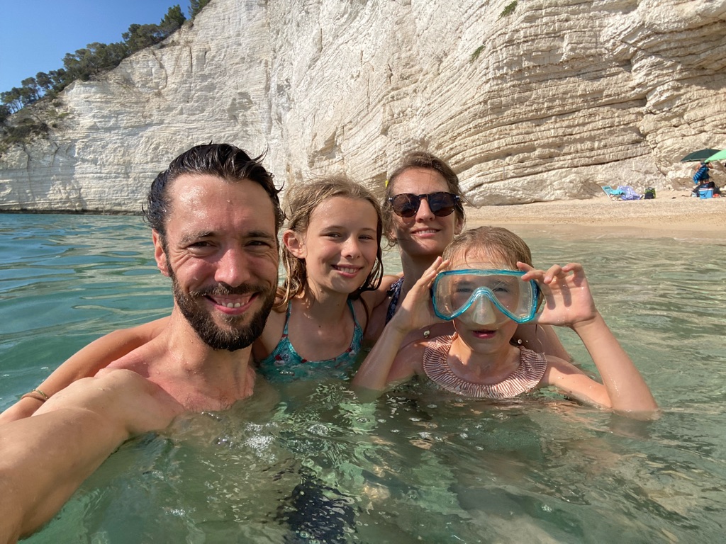 10h du matin on arrive à la plage, on trouve une grotte dans la falaise pour avoir un coin d’ombre. Mission accomplie, il ne reste plus qu’à rien faire. La journée s’articule autour de baignade, de plongée, de lecture, de sieste, d’un sandwich et d’une bière quand même.