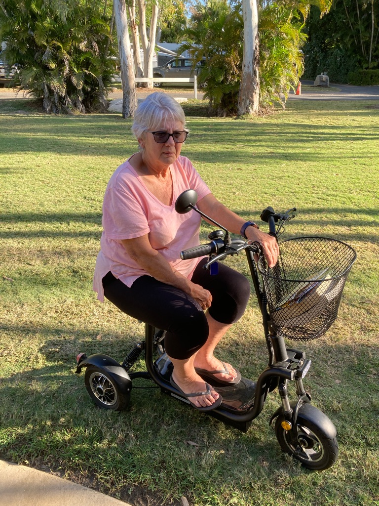 On the way back I scooted along and reached 18km per hour. When we got home I said to Brian I had the wheel wobbles so my extra handy husband tightened a few things and everything now seems much more secure. Had a few rides around the park but we’ll go for another one tomorrow and I’ll see how it is. I am very impressed with my scooter and just love it. 💕💕💕💕 Brian can’t keep me off it.