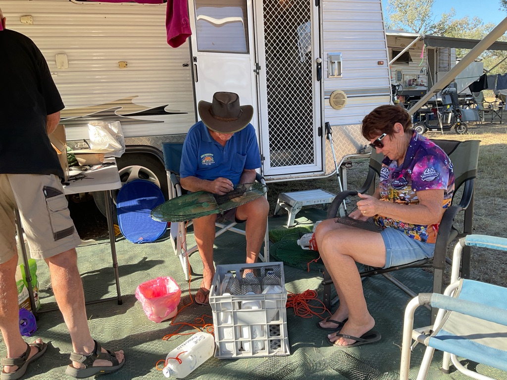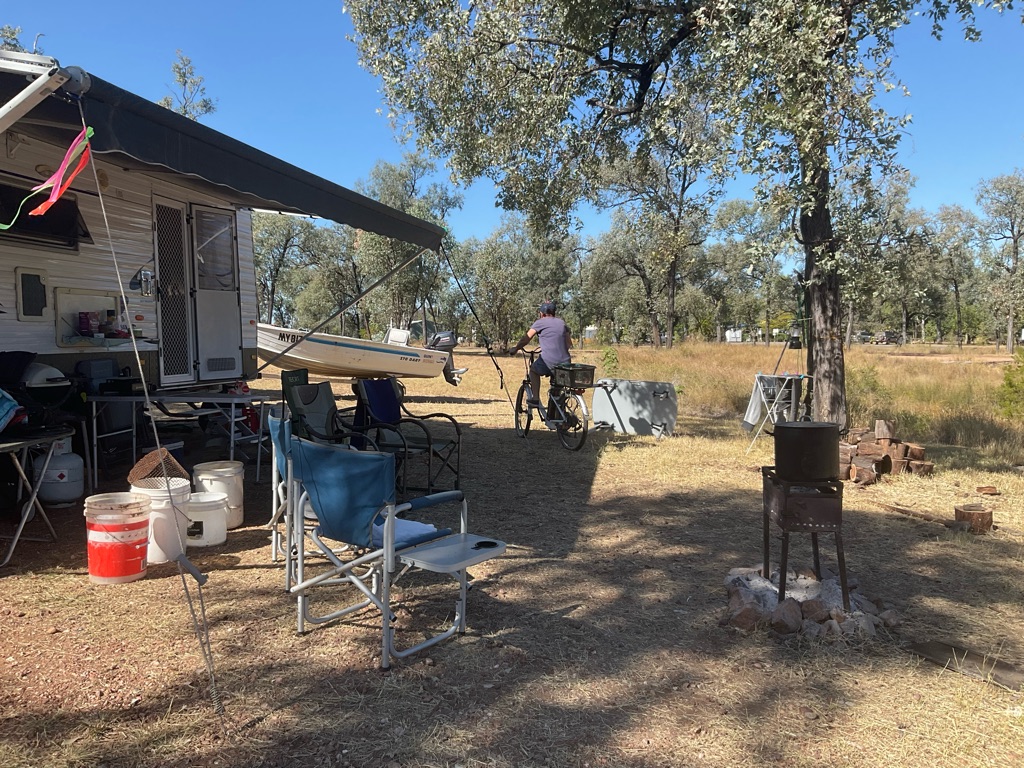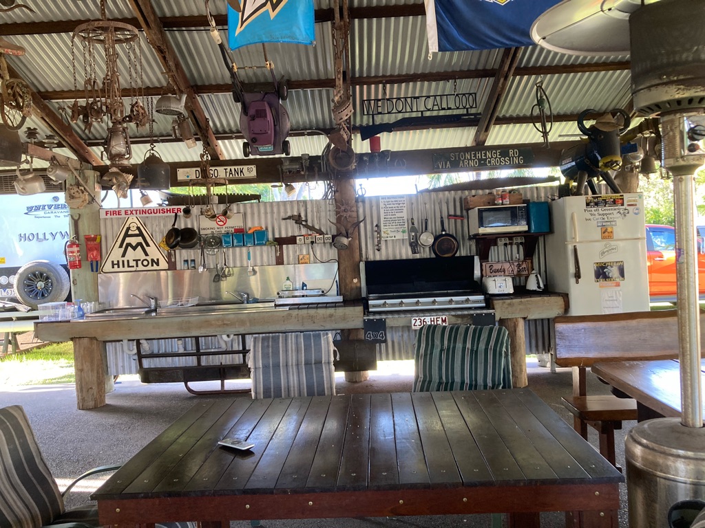 Only had to go about 42kms to Ana & Jeremy’s but that took us a while as the road was very flood damaged and then when we turned of the main road we were on very corrugated dirt road for about 10kms, so going was very slow. Got to the house and Jeremy was home. Brian then realised his bit of pipe he uses for the sway bars had fallen off so the boys have gone back to see if they can find it on the road. ( No luck finding the pipe, lucky he had a spare🤣)