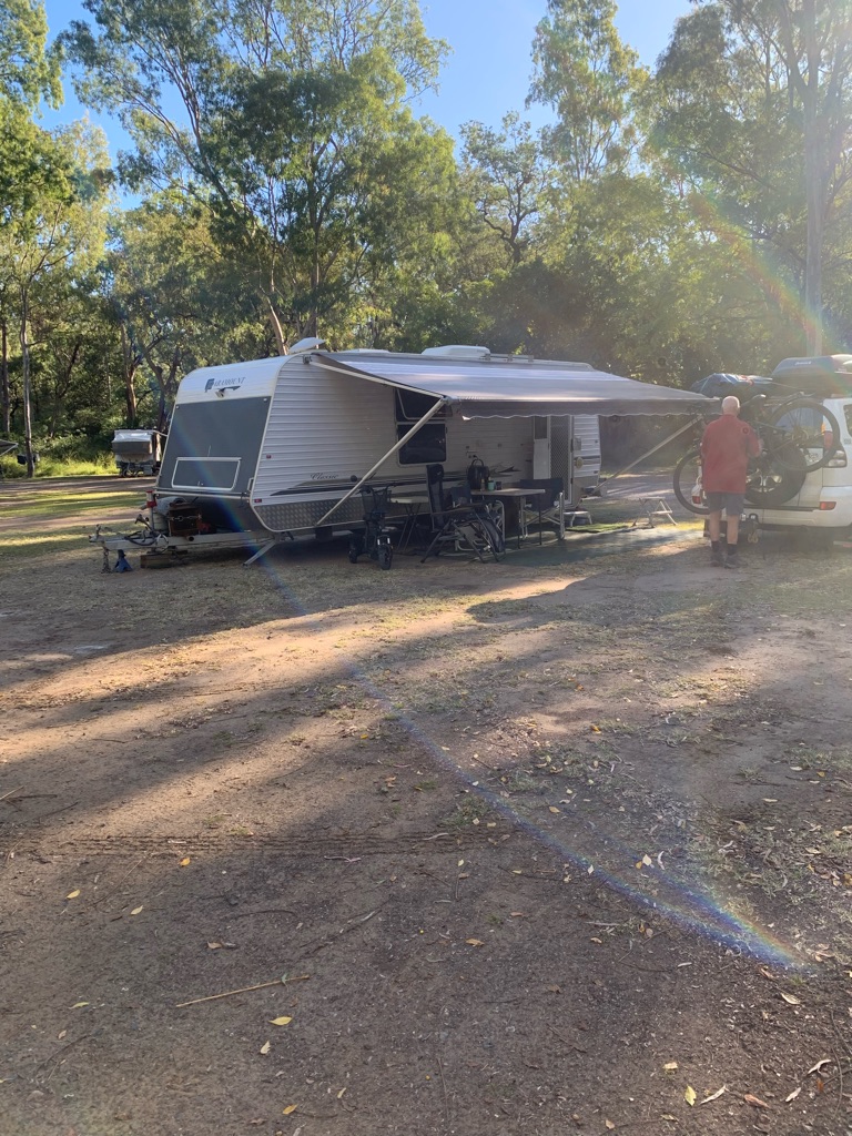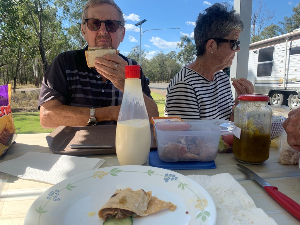Went through a few hills and bends but nothing \240too taxing. Stopped at Bingara to have lunch - leftover Mulligawatty? Soup ( that’s not how you spell it) and Brian had a rest for about 30 mins. Stopped at a lovely Memorial Park where there was lots of rooms for vans to park up - day use only.