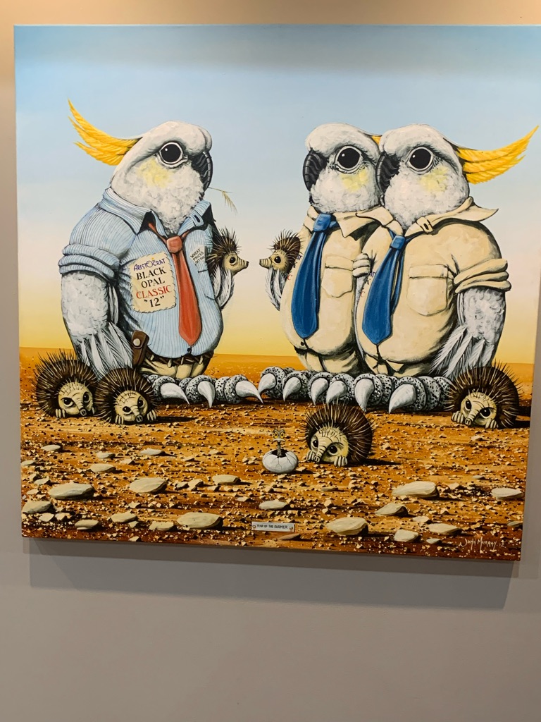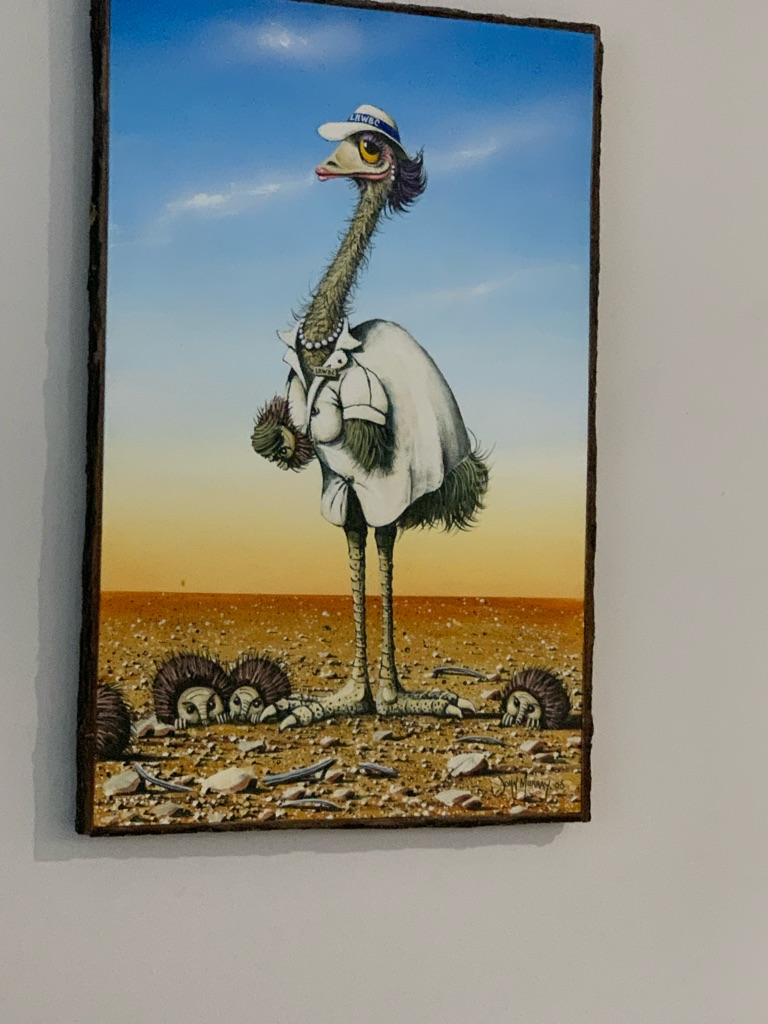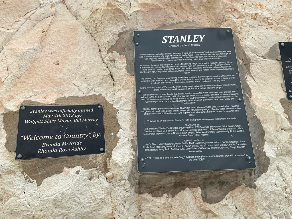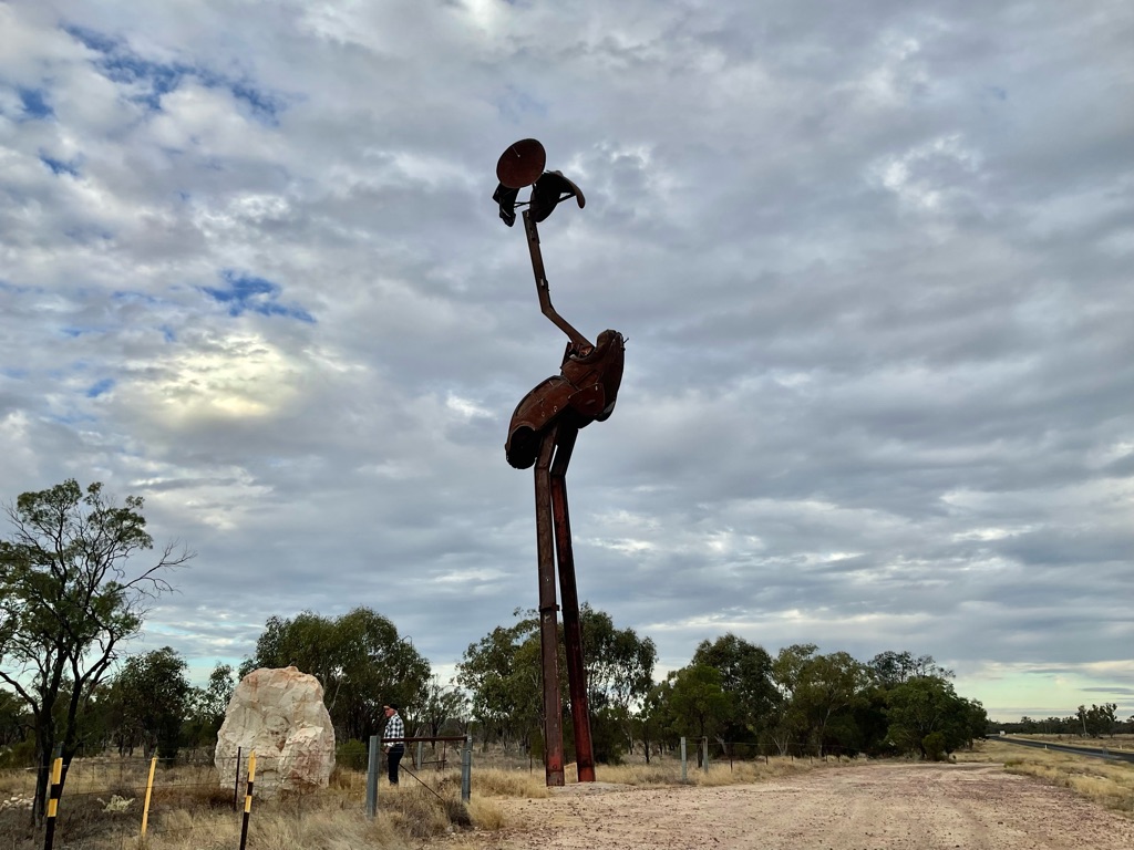 Went out the road to see Stanley The Emu. He was built by a local artist & stands 18 metre high, crafted from old VW Beetles & satellite dishes atop steel girders. It was originally meant to go to Birdsville but it was too big and expensive to transport so it stayed in Lightning Ridge ( about 10kms out of town on the highway)