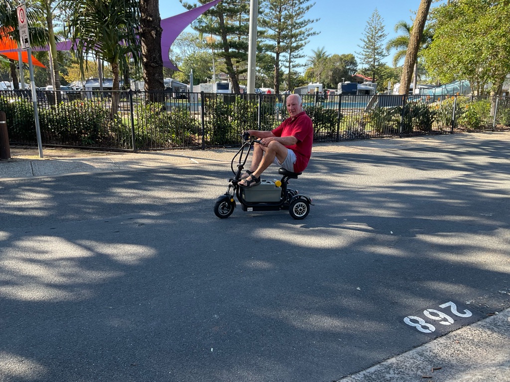 After paying, \240which cost $78, \240we went to the entrance where a lady challenged me about my scooter. She said that scooters were not allowed in the park. I told her that I used it as an aid for my back and I couldn’t walk around the 5 kms of the park. She reluctantly let me in as she said she would class it as a mobility aid - which I guess it is. Had lots of comments from people walking around wondering where I got it from and wanting to buy one. I should start up a side business.