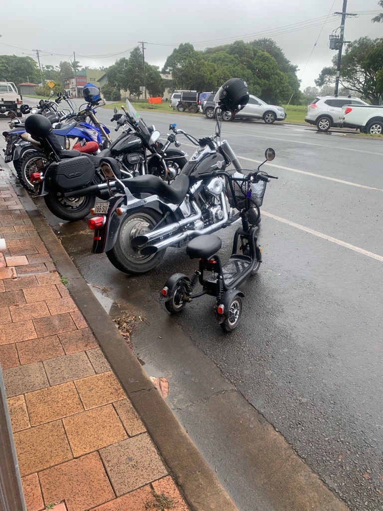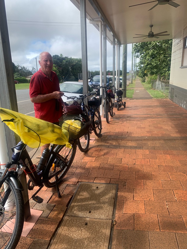 After the rain eased we rode the bikes down to Brian’s favourite shop AGAIN. He needed gutter guard( for the opera house nets), little cable ties to attach the gutter guard & a rubber reducing joiner for the drainage pipe in case it starts leaking again. He’s in his element in that shop.