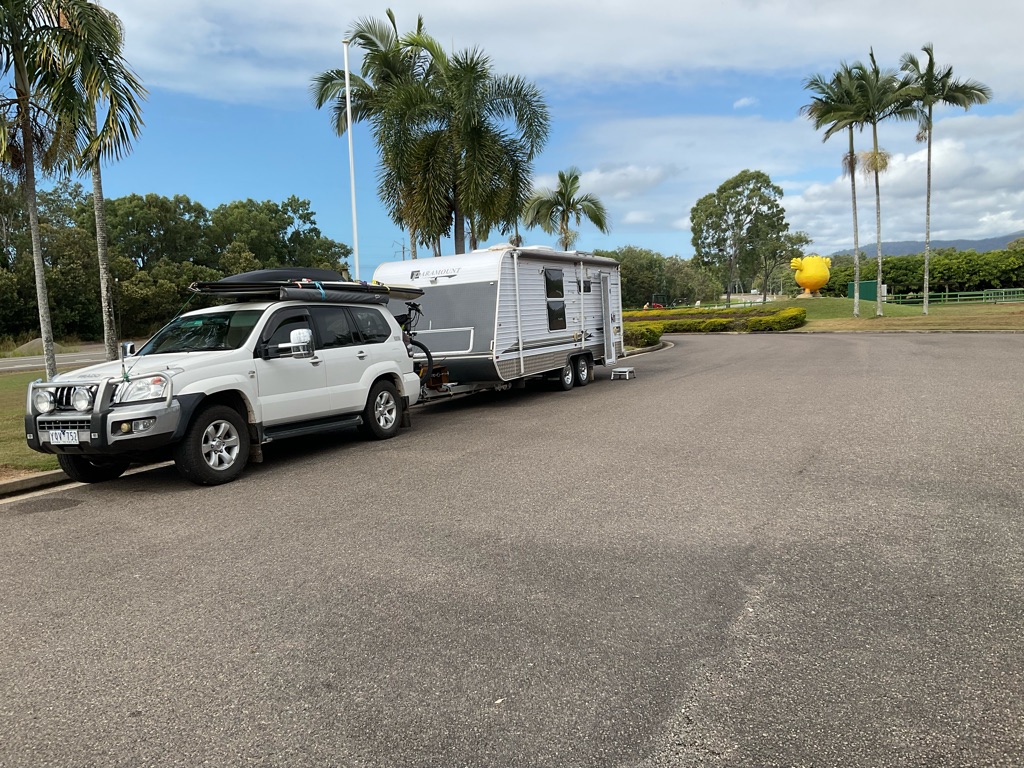 Left home at about 11am after we got all our jobs done. Had a great trip, Prado went really well. However we did weigh in and we are 320kgs over, thanks to the boat and all its stuff and the 3 dozen bottles of wine probably didn’t \240help either.
