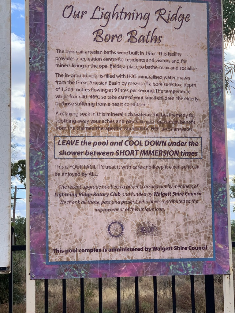 Got to the Bore Baths about 2pm - Brian had a little rest then we went for a swim. It was very warm but quite soothing. Brian got into a conversation with ‘a know it all, I’ve done everything man’ - there’s always one where ever you go