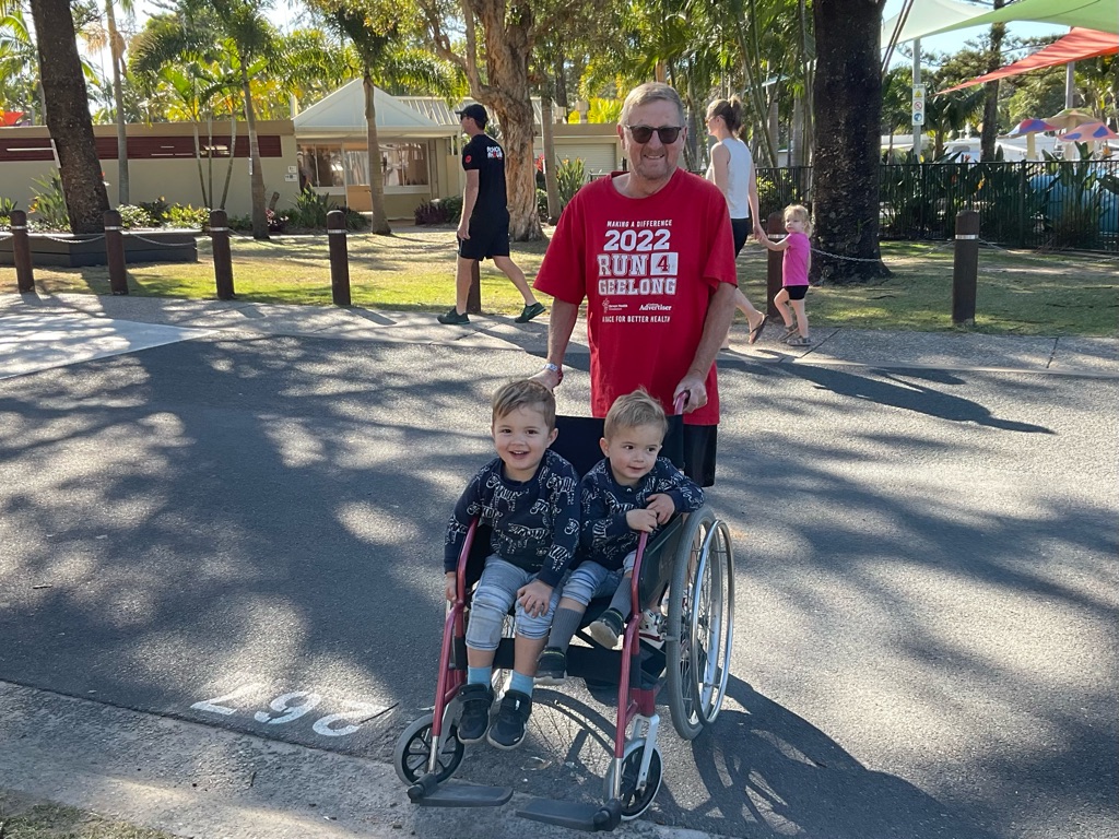 The little boys next door are leaving so while their parents packed up, Tom took them for a walk in Margs wheelchair.