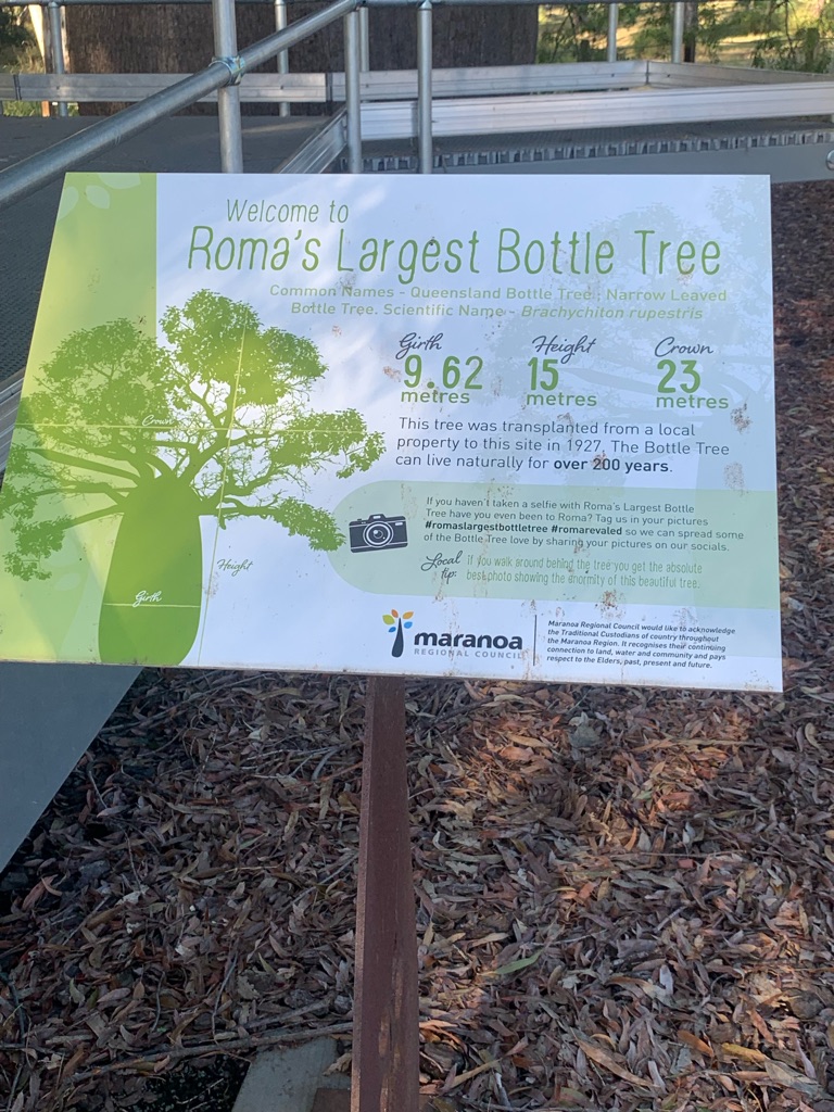 After lunch, we had a bit of a look around, saw Roma’s largest bottle tree.( that was really exciting !!!) We thought we’d go to a museum that had a display of old farm artefacts but they wanted $20 per person admission and we decided we probably had most of what they had, at home. So we gave that one a miss.