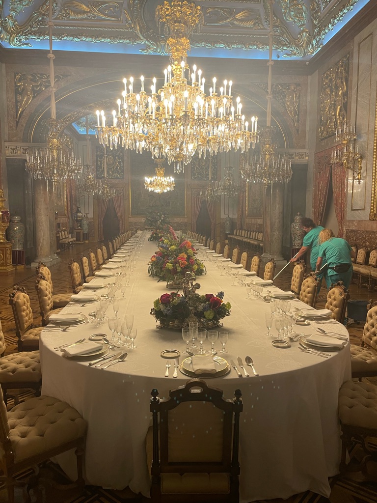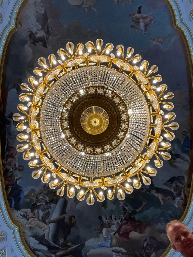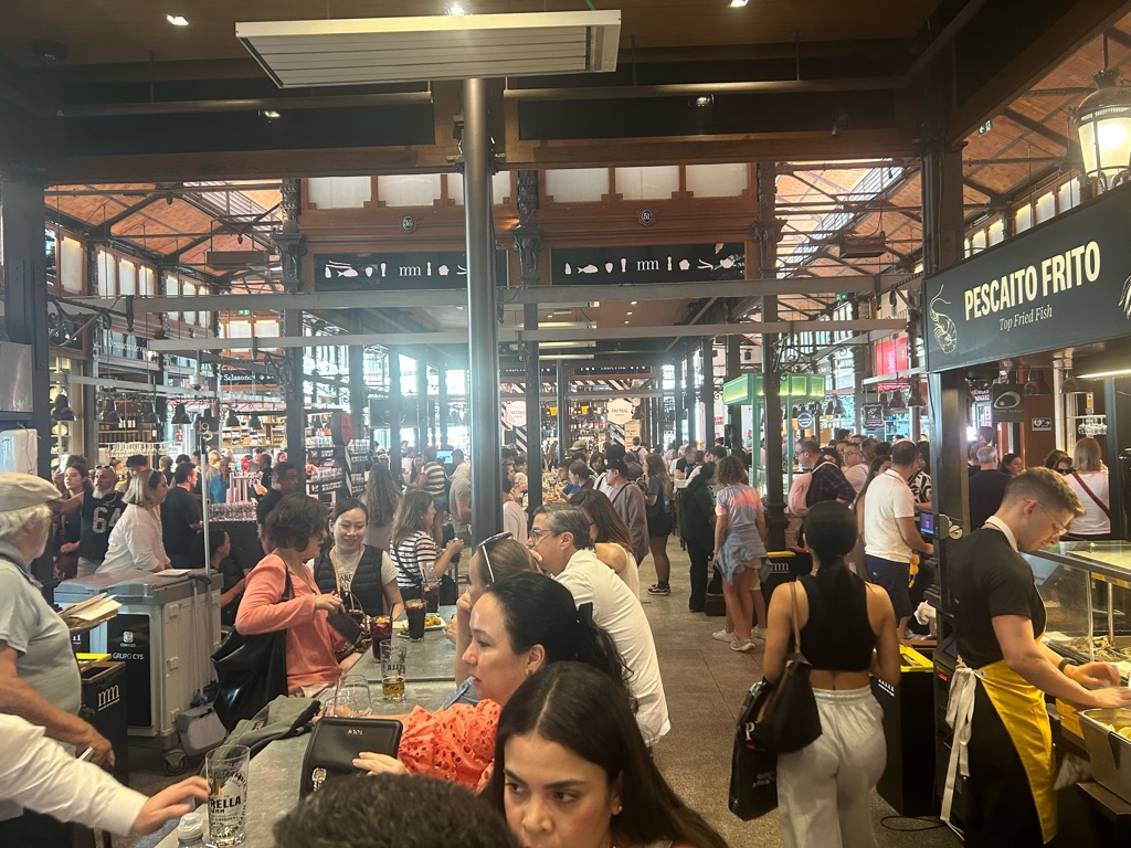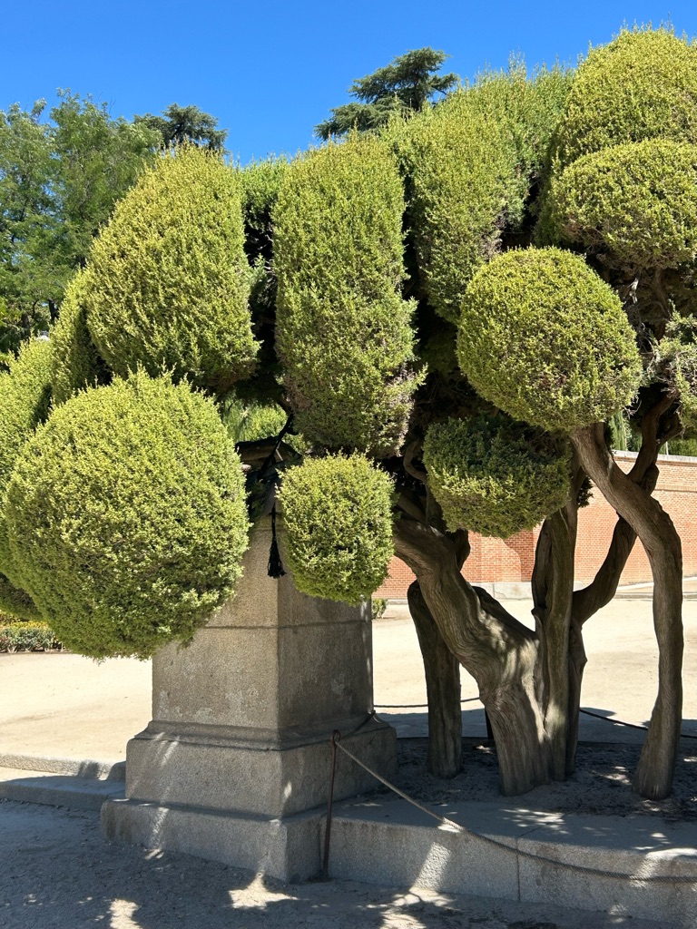 Told John to stop at the Atocha Metro Station- a huge station Ala “grand central station” because there is a beautiful garden oasis right in the center- here it is….under construction. 😂 If you zoom in you can see the greenery behind the plastic.