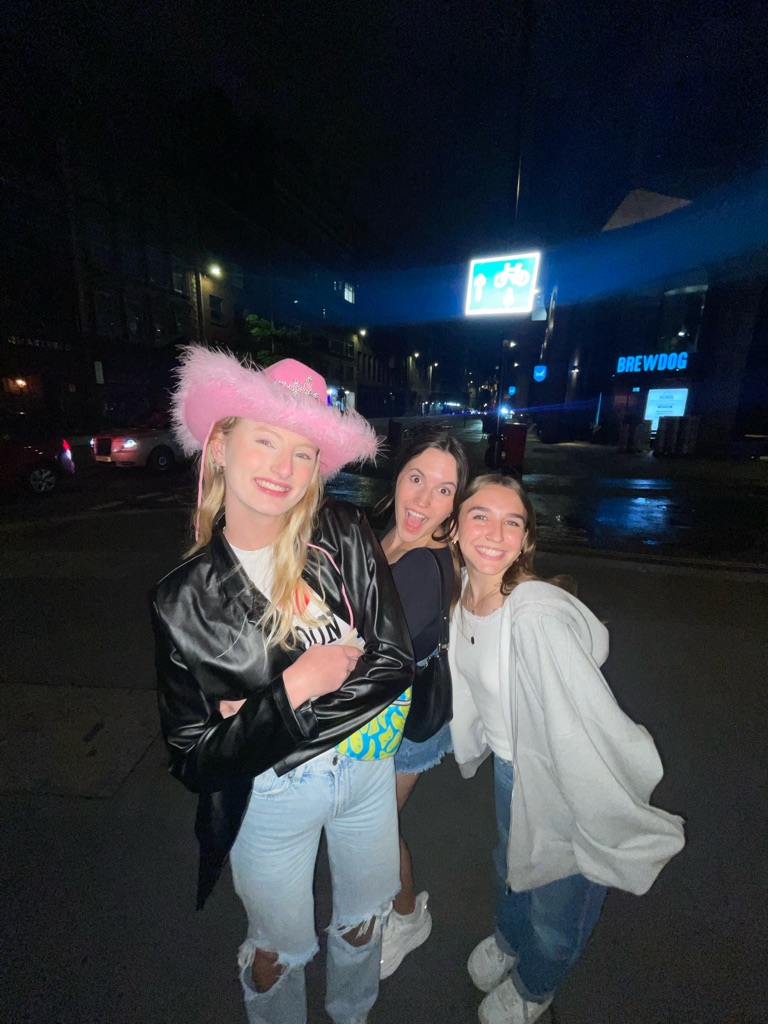 went out w hostel friends! random guy gave paityn a pink cowgirl hat!
