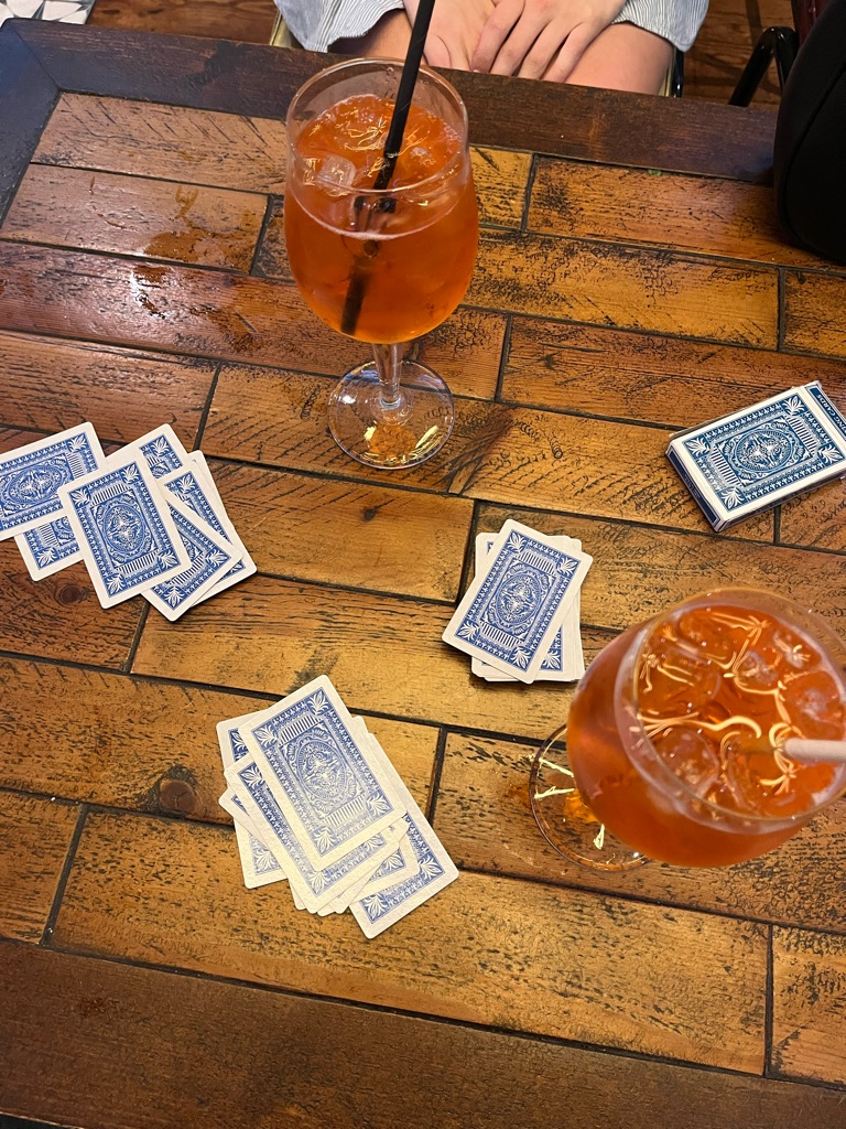 cards + aperol spritzes