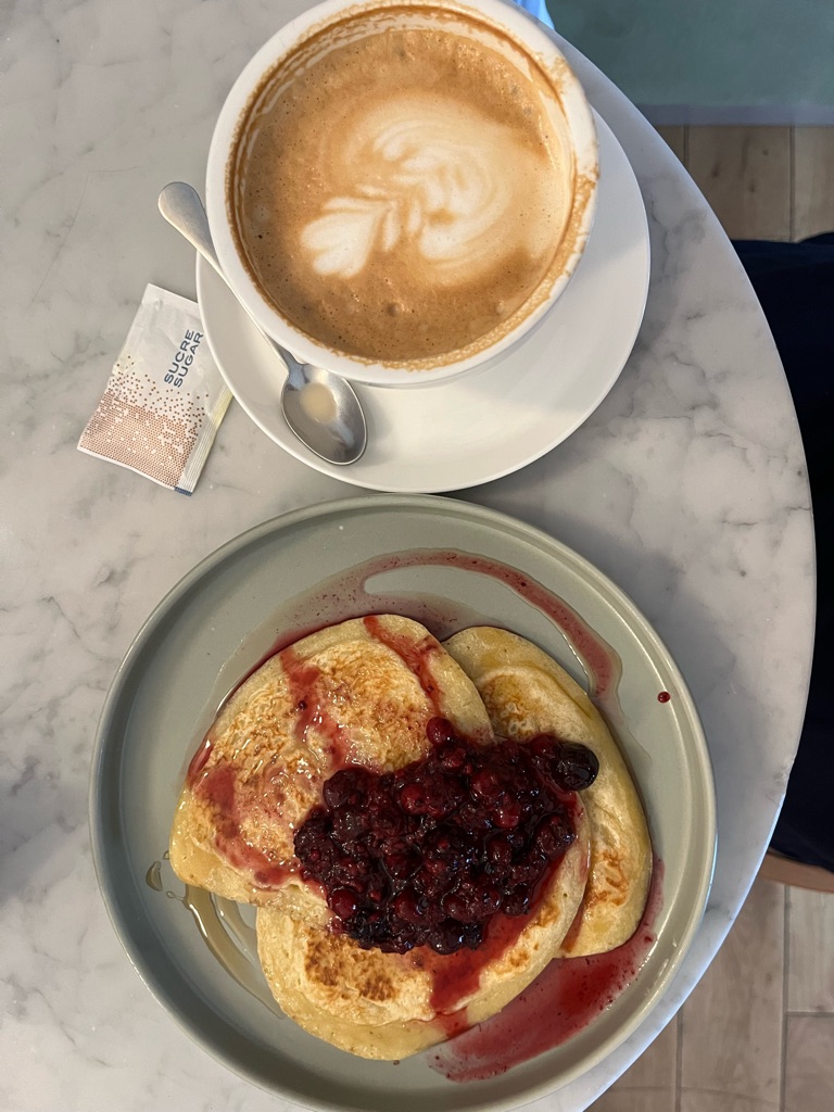 got a cappuccino and pancakes topped with berry compote! this trip has turned me into a cappuccino girl for sure!