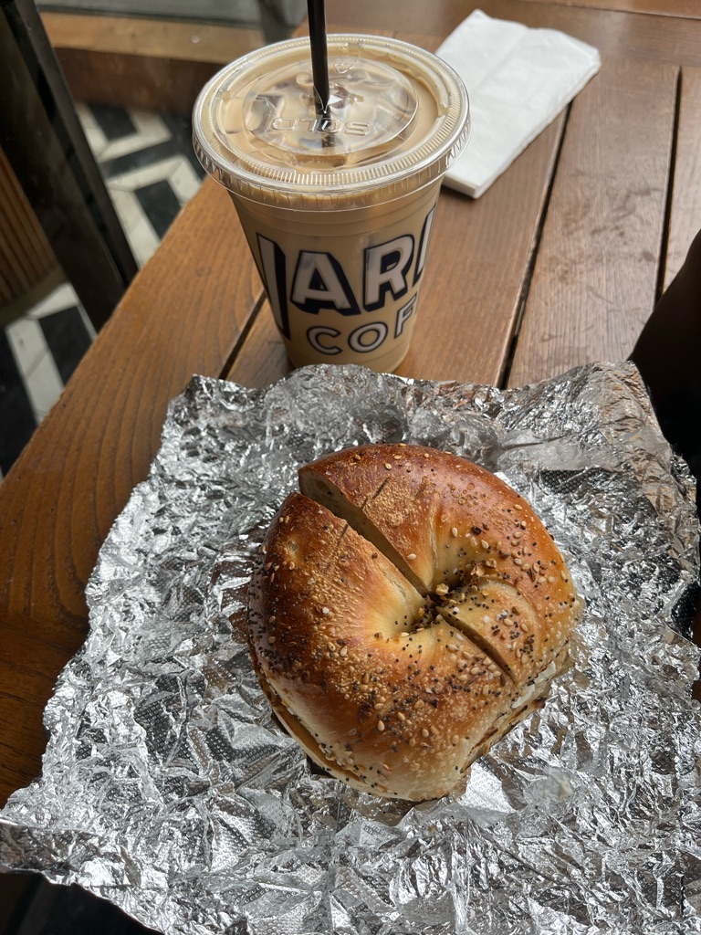 NY DAY 2!!! today we got bagels and coffee in the morning then we walked around the met again! after the met we went to the flea market and got rings. after we had happy hour tacos and margs so yummy! then we went to a play!! it was called a” sign of the times” i would give it ⭐️⭐️⭐️⭐️ very entertaining and had good seats! went to dinner after and ran to catch the bus. ended the night guessing the most common baby names in the us.