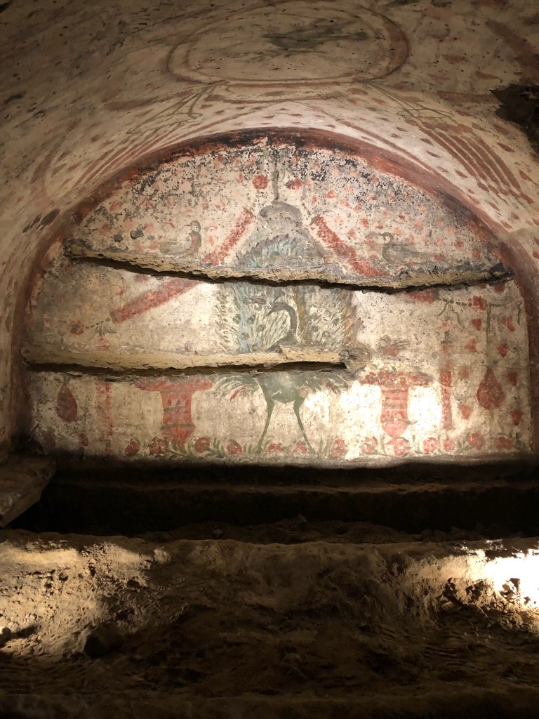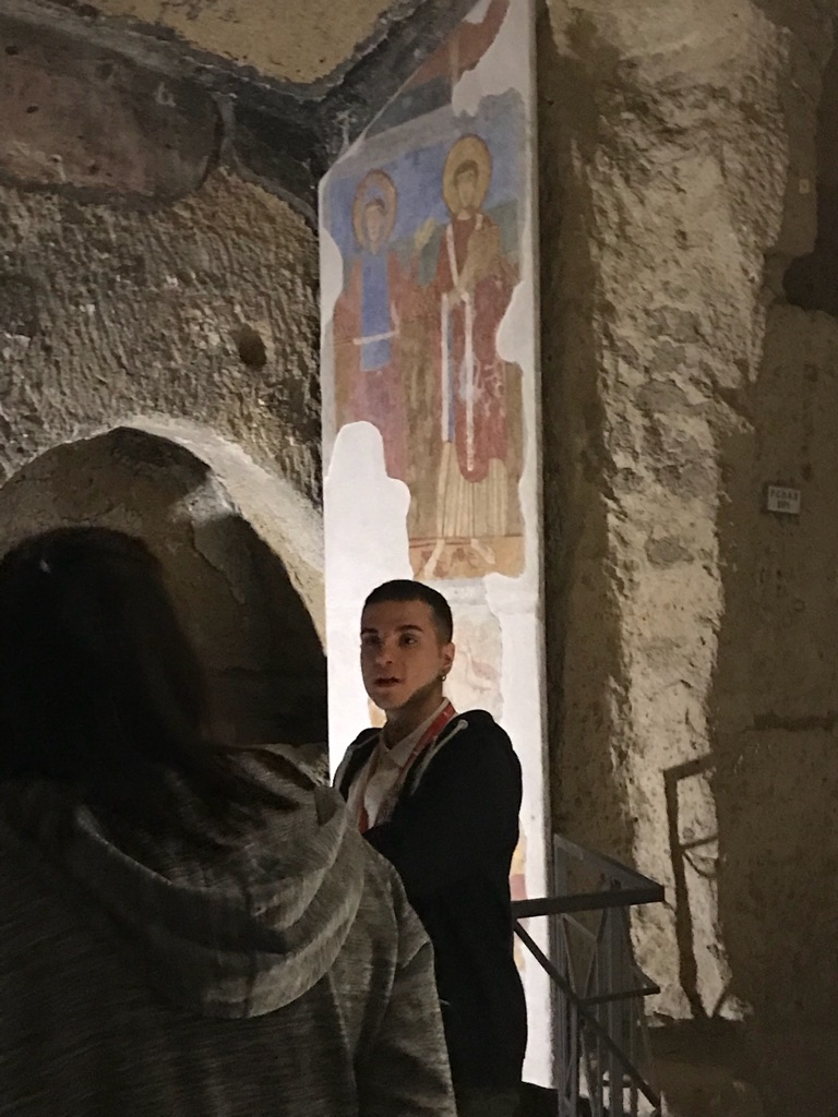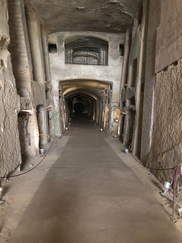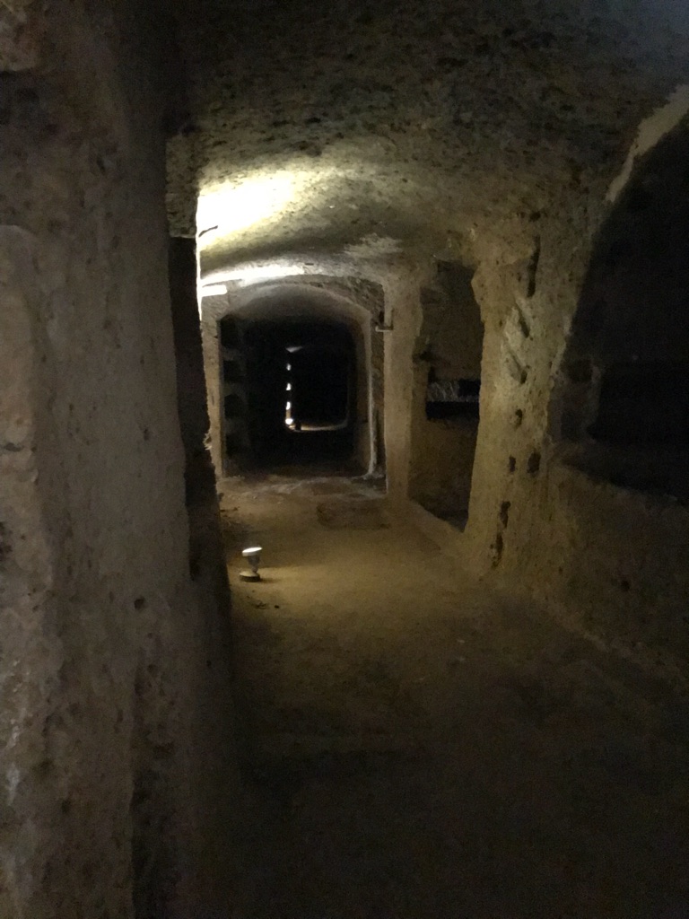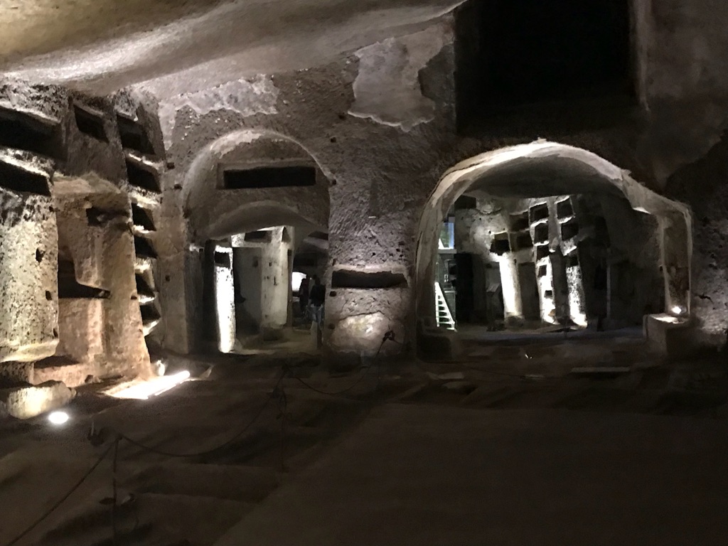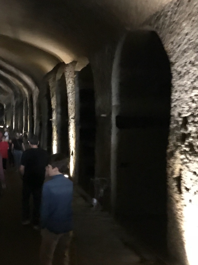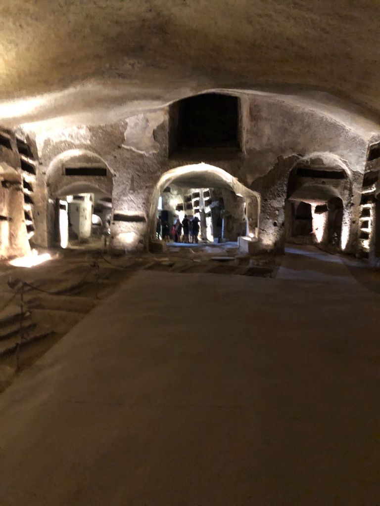 We’re in Naples. We went into the ruins called the catacombs. That’s where they used to put all the dead people.