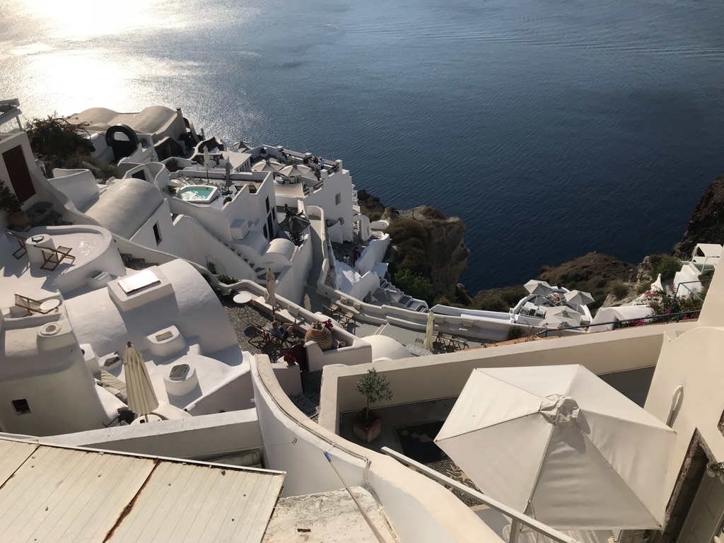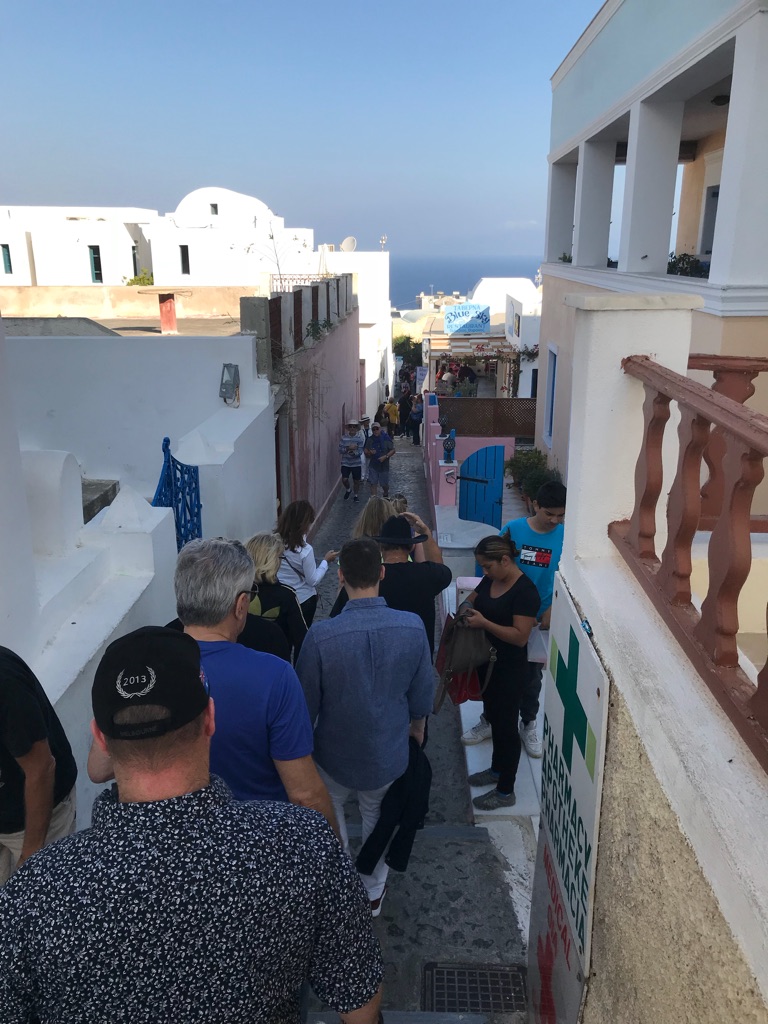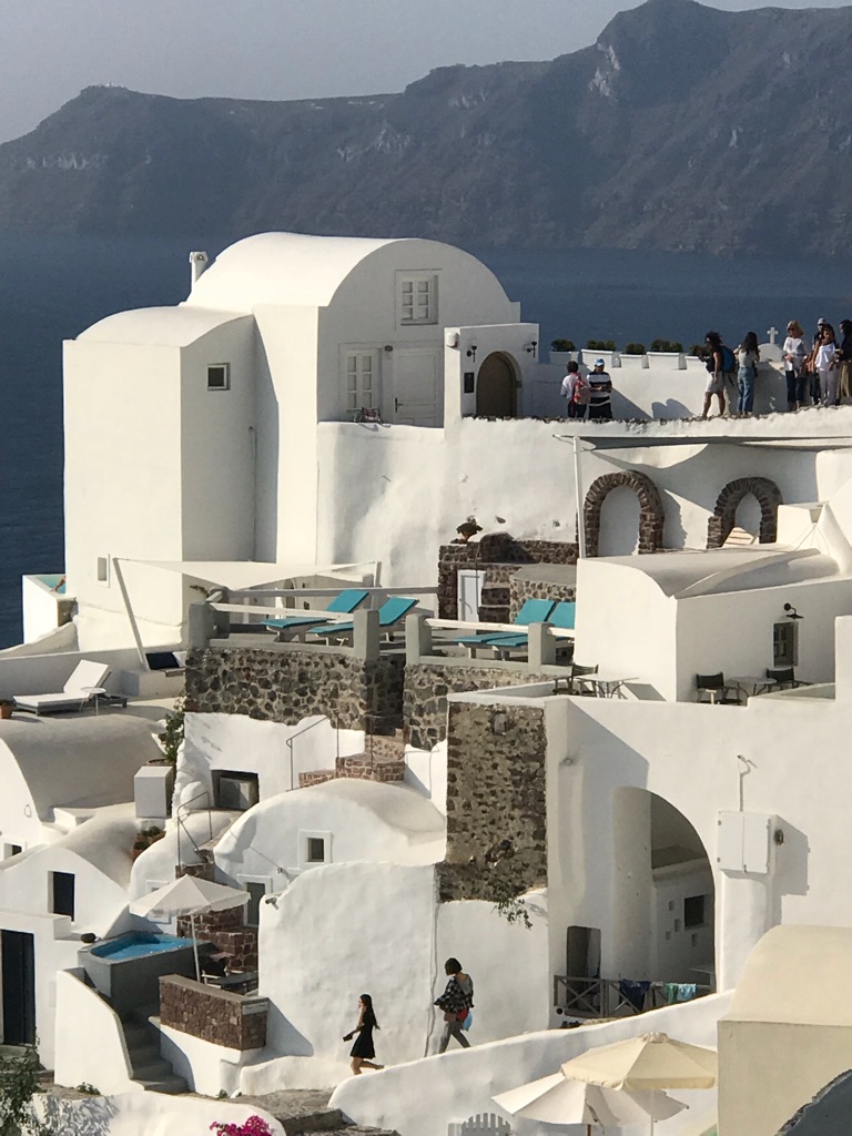 This is Oia. It’s famous for its blue roofs...guess they’re repainting?