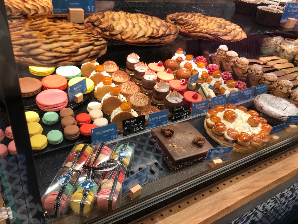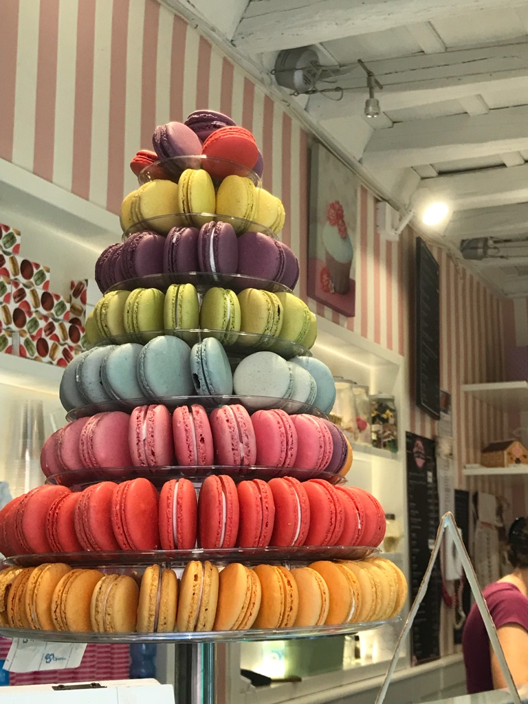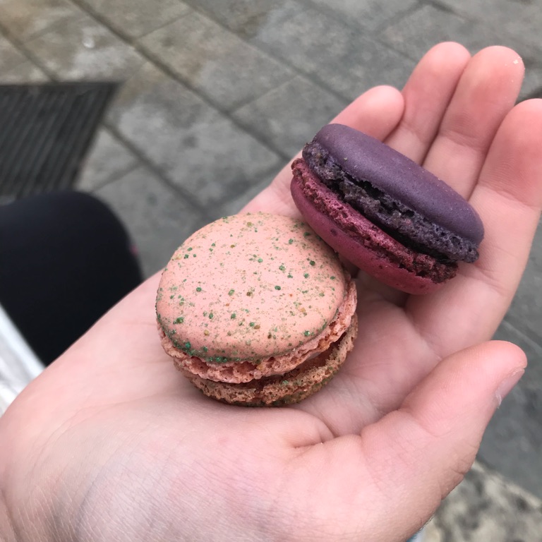 Went to a store and got macrones (those colerful things in a box), a croissant, and a baguette.