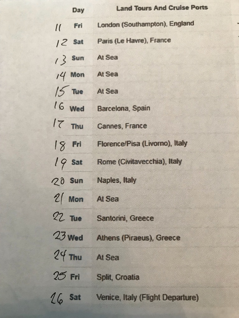 We passed the Rock of Gibraltar at 6:00 this morning. But we couldn’t see it because it was dark. Tomorrow we’ll be in Barcelona, Spain!