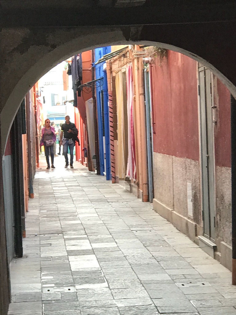 Today we ran around a marathon, saw a master glass artist working \240and rode a water taxi to Burano. It’s one of the most colorful towns in the world.