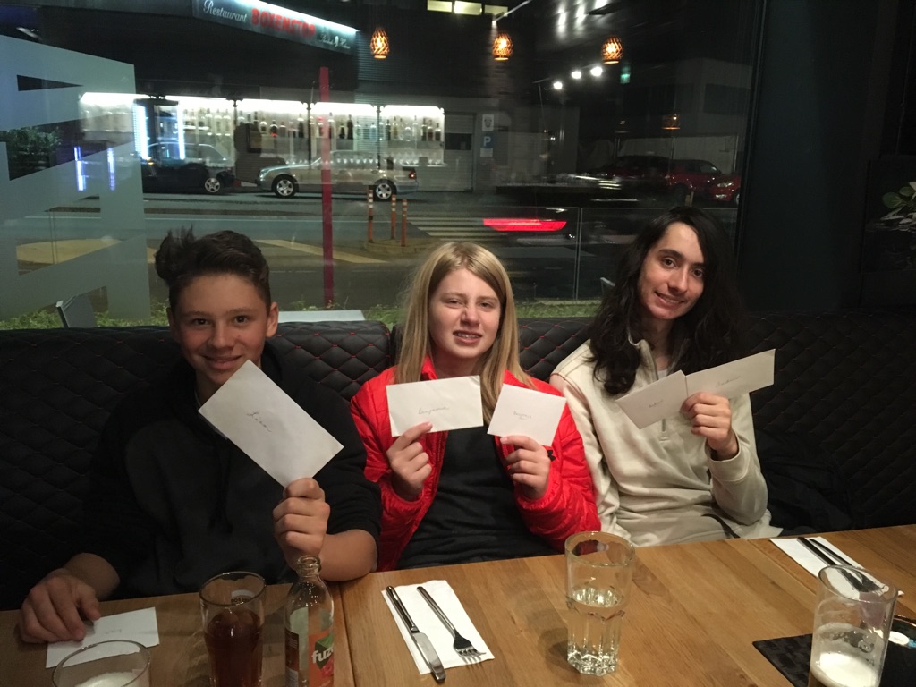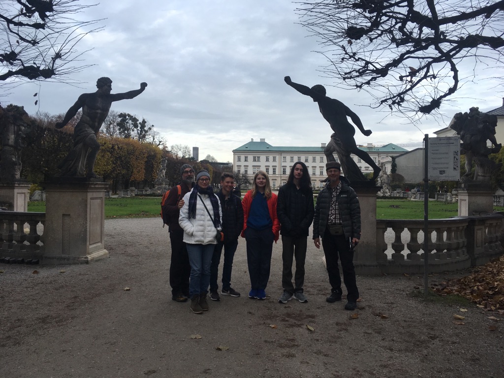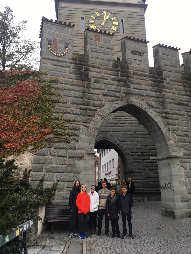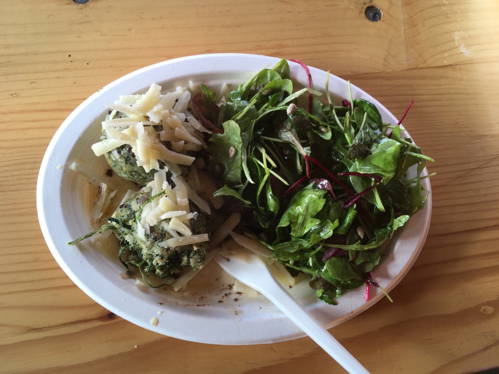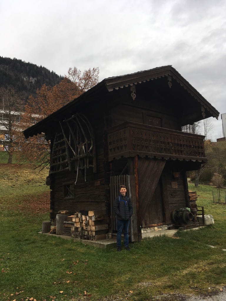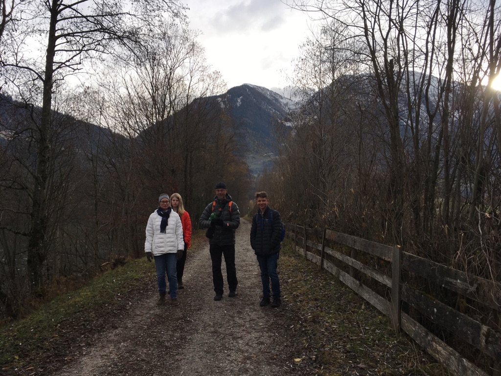 After the coaster we found a place to park in the village of Zell am See and began to walk toward the lake and the main part of town to find a restaurant, take pictures of the lake, and hit the Christmas markets. \240We chose a restaurant that served local Austrian food and a variety of other items. \240Me, James, and Carole ordered something that said it came with bacon and cheese. \240Liam ordered some sort of spinach dumpling, Dan had the fish special, Andrew got fried rice, and Ben had the burger. \240When mine came out I was very surprised that it looked like a white pizza on flat bread. \240Liam’s was a bread, spinach dumpling. \240The food was delicious. \240We all enjoyed our meals very much. \240