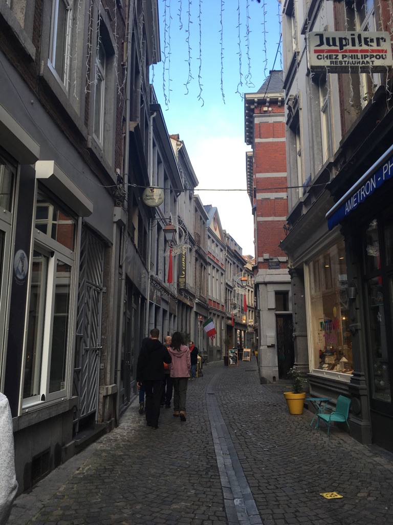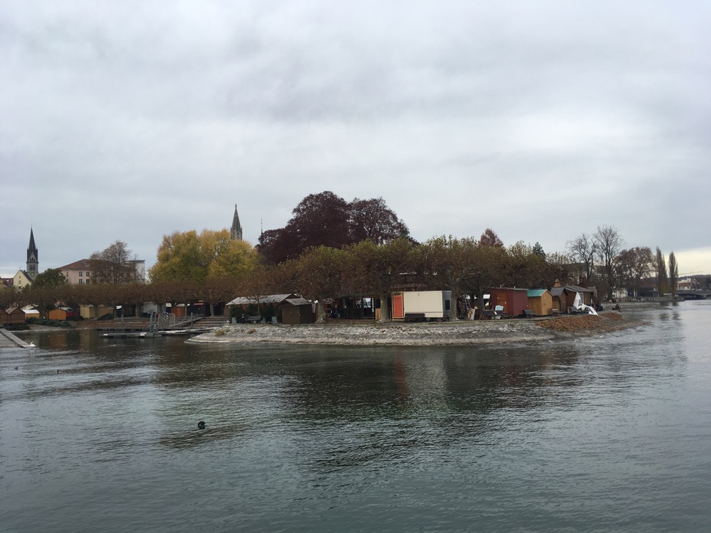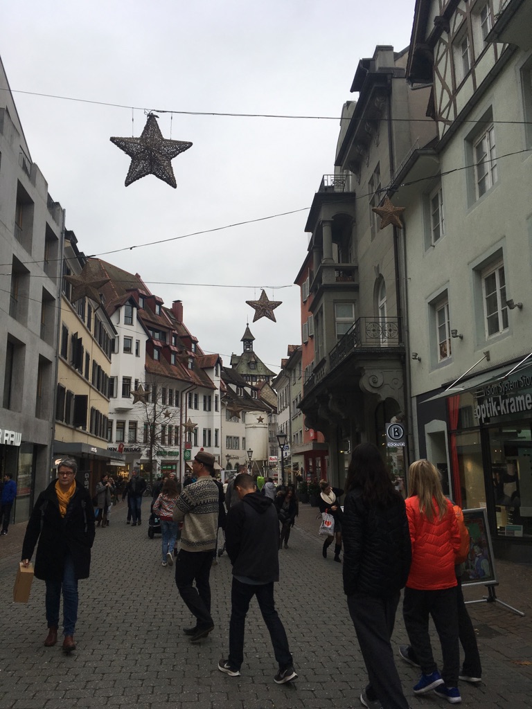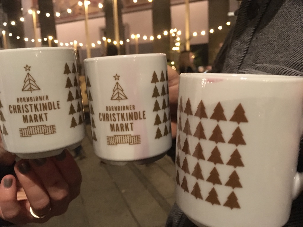 After lunch we strolled along the lake to take pictures. \240There was a small Christmas market down there and Liam tried a sample of pepperoncini and pickles. \240I don’t think he liked them enough to buy them but I decided to buy a small jar of their pesto. \240We got Gluwein of course and added to our mug collection. \240
