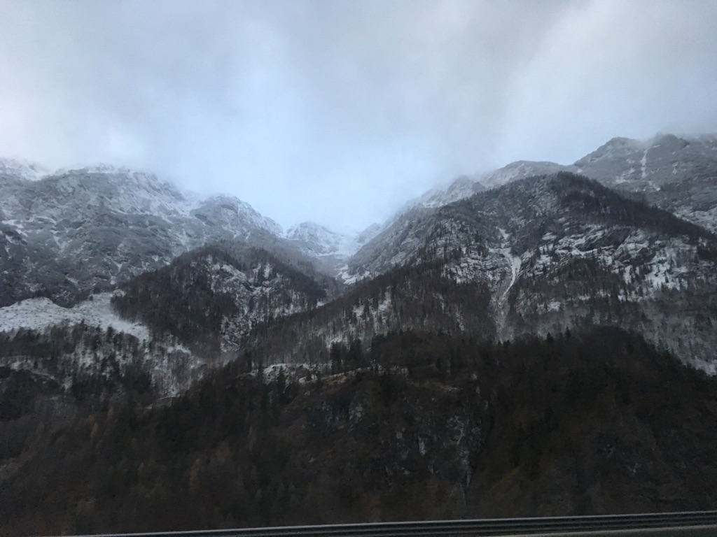 The road twisted and turned through a rugged valley with extremely steep earthy walls, rolling green hills and snow-capped mountains in the distance. \240The mist hung above the trees like a blanket and the sun threatened to poke through the low-lying clouds. \240We arrived at the Kitzsteinhorn and found the parking area for the mountain coaster. \240The gentleman working the parking lot area spoke in rapid German. \240All we could decipher was “No not today, not until tomorrow”. \240We all felt disappointment, but parked the car anyway. \240James went to find the ticket office to inquire about riding the mountain coaster and if that was closed, what else we might do in the area. \240We saw one person coming down the sled of the coaster but nobody else. \240Was it closed for maintenance? \240Is it only open on weekends? \240We waited in the car for a while for James to get back. \240I could see the nearby mountains. \240They held their breath in anticipation of the busy ski season about to be unleashed. \240This was a calm before the frenzy and it appeared we had the whole place to ourselves. \240