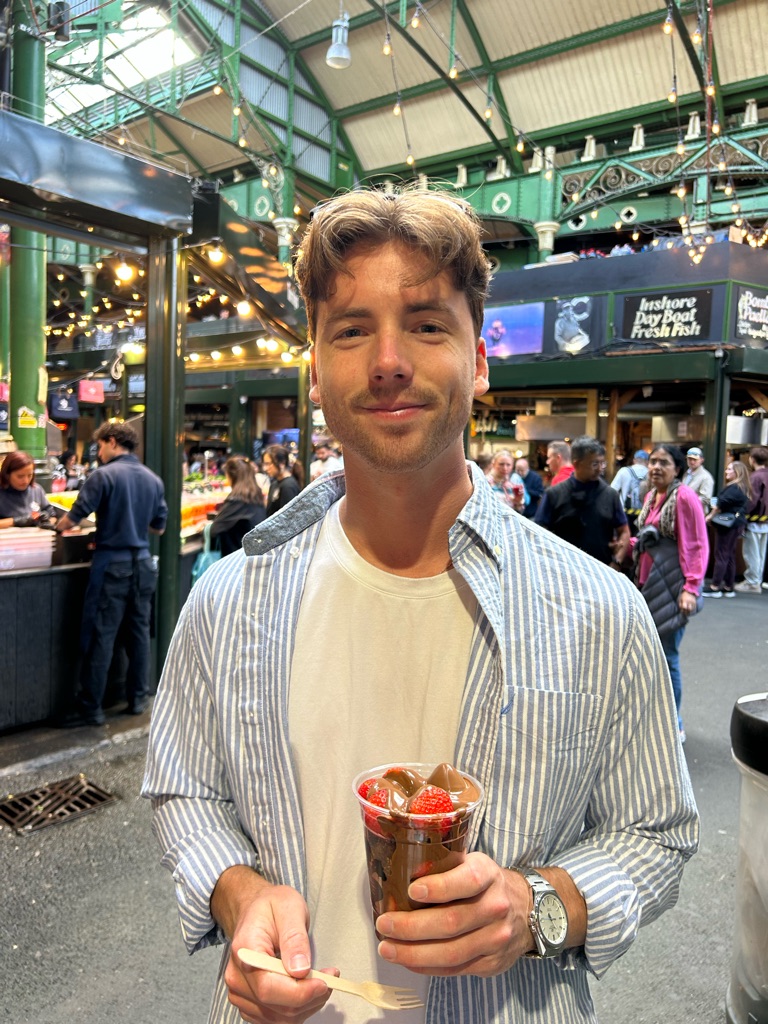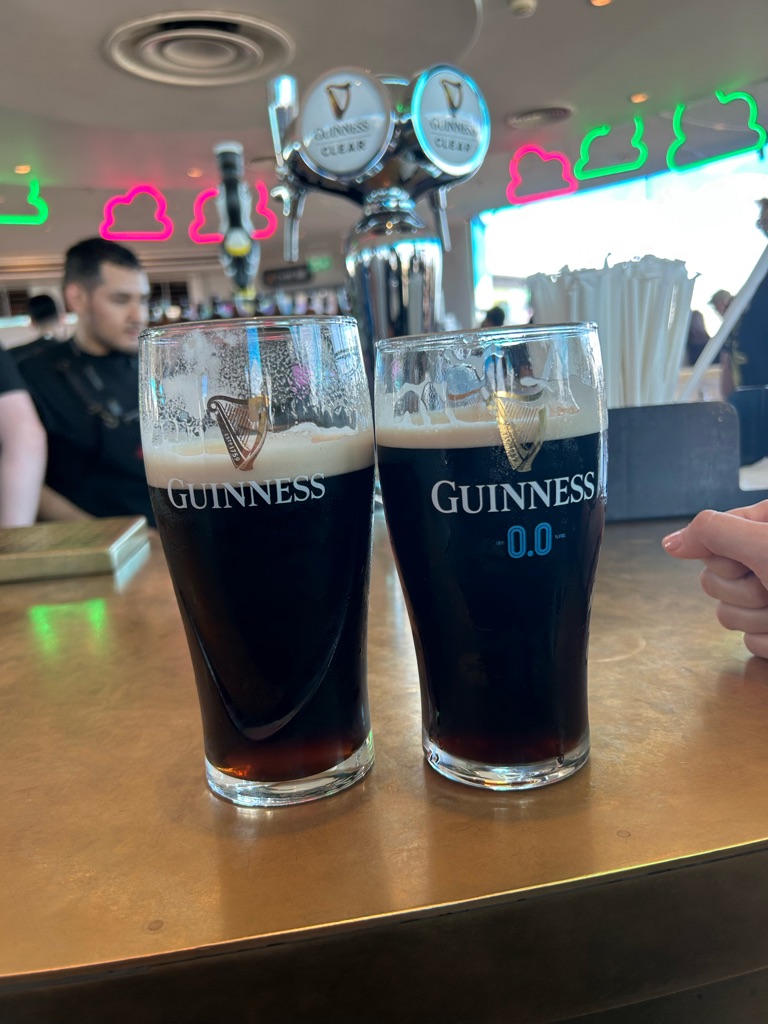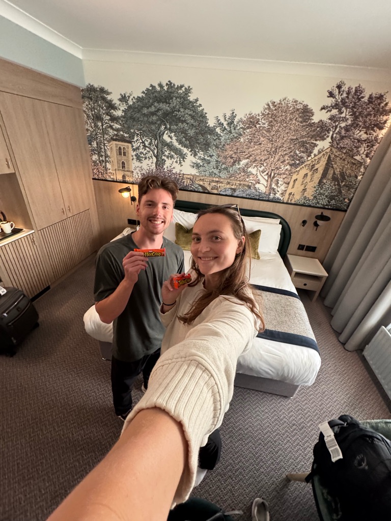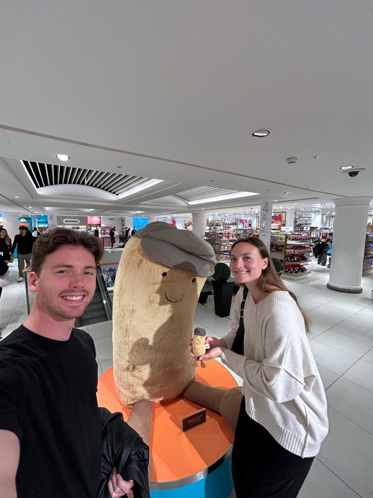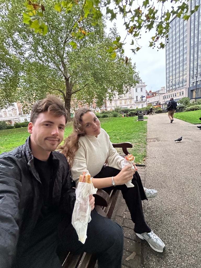 Alright lads strap in because we had ourselves a doozy of a day today and I found out you can add videos to these so more content to come. Woke up around 5am to pack up and get to the airport to return the car and get through security for our flight back to London. The process went way smoother than planned, officially made it through driving in Europe without a scratch (at least not one I was charged for, the car definitely has some more character now that the car company doesn’t need to know about). After a short weather delay and quick flight we were back in London where we will be for the remainder of our trip. Took the tube to our hotel where they had our room ready early so we dropped our bags and hit the city. Started off strong with a couple of sandwiches from Dal Fiarentino which was basically a subway with way fresher and nicer incredients. Sandwiches were a 10/10, will most likely be going back and they were only £5 a piece. Kept the energy up by stopping into a matcha place called Jenki to get another matcha latte. I think Makenzie has finally converted me to be a matcha boy, they’re a lot more tolerable now. Took a stroll through some of the main streets and did some window shopping where a saw some watches I had been looking at for awhile from Swatch that are difficult to get in the states. Makenzie encouraged me to go in and see if they had the whole collection and they did so we checked them out and I got to try a couple on. Very cool collaboration between Omega and Swatch to make a watch mirroring the Omega speedmaster, the first watch worn on the moon, but for a much more affordable price. Keeping that in the back of my mind, we continued walking and shopping through the streets where we found courtyards, alleyway food markets and parks as we made our walk towards the river Thames and the center of the city. Made it to the river which we followed the rest of the way until we got across from the London Eye. We don’t really have a desire to ride the Eye, but it was nice to sit on a bench and watch it for awhile. Kept walking until we found Big Ben where it started raining, so we made our way to a park to try and hide from the rain under some trees. Rain didn’t last too long, but we saw some new birds we hadn’t seen before so made a loop through the park to see what creatures were crawling around. Found a squadron of pelicans in the river (I did google it and that is the official name for a group of pelicans) and some moorhens that looked pretty fun. Started another trek to make our way over to Buckingham Palace that we will be touring later in the day, but we were ahead of schedule and figured wouldn’t hurt to walk the grounds around the palace before going in. However, rain started to pick up again and we still had about an hour and a half before our tour so we got a coffee at a chain coffee spot called Cafe Nero which was nothing to write home about, but I’m doing it anyways. The rain stopped and it was about time for our tour so we made our way back to the palace. Unfortunately no photography is allowed inside the palace so I can’t share pictures from the self guided tour, but we were able to see the different areas in the palace and learn about the history of each King or Queen that made developments to the grounds to get to where we are today. We also got to see pieces of art from the kings collection. The tour ended behind the palace where you typically get to go through the gardens, but they were closed off due to the high winds so our tour was cut a little short. Earlier in the day while we were on the bench we had bought tickets to see The Book of Mormon in the West End because we heard it’s like the Broadway of London so we wanted to stay out until the show started at 7:30 and the tour finished up around 5 so we had some spare time. We found a ramen place that had a discount for anyone with theater tickets from the same day that was close to The Prince of Wales Theater where we were seeing our show so we started walking to that part of the city to spend the rest of our time until the show started. Naturally as we were walking, we were craving Walkers, the British version of Lays, so stopped into a market to try them out. We got the salt and vinegar flavor which were good, but didn’t have the same kick as the American version. Must be some extra flavor in all those additives or something, but these were decent enough to satisfy. Coincidentally ran into a statue of Florence Nightingale, the original nurse so we made sure to stop and get a picture of the nurses together. Made it to our ramen dinner which was just about the same as the ramen spot we had in Ireland, neither were better than our go to spot back in Chicago but they both hit the spot. Still had a bit of time after dinner so we stopped into the Lego store where we saw some pretty awesome builds. They had a 344,020 piece Big Ben, a James Bind car you could sit in, and a bunch of Harry Potter themed builds which were all fun to see (don’t worry pictures are below). Finally it was theater time. The cast was so good and the show was absolutely hilarious, one of my favorite musicals I have seen so far. Makenzie and I decided our favorite songs were “Turn It Off” and “Spooky Mormon Hell Dream” but they were all fantastic. Made the late night walk back to the hotel and called it a night. Ended the day with 28,600 steps, definitely going to be sleeping good tonight. That’s my Ted Talk of a recap, thanks for reading!