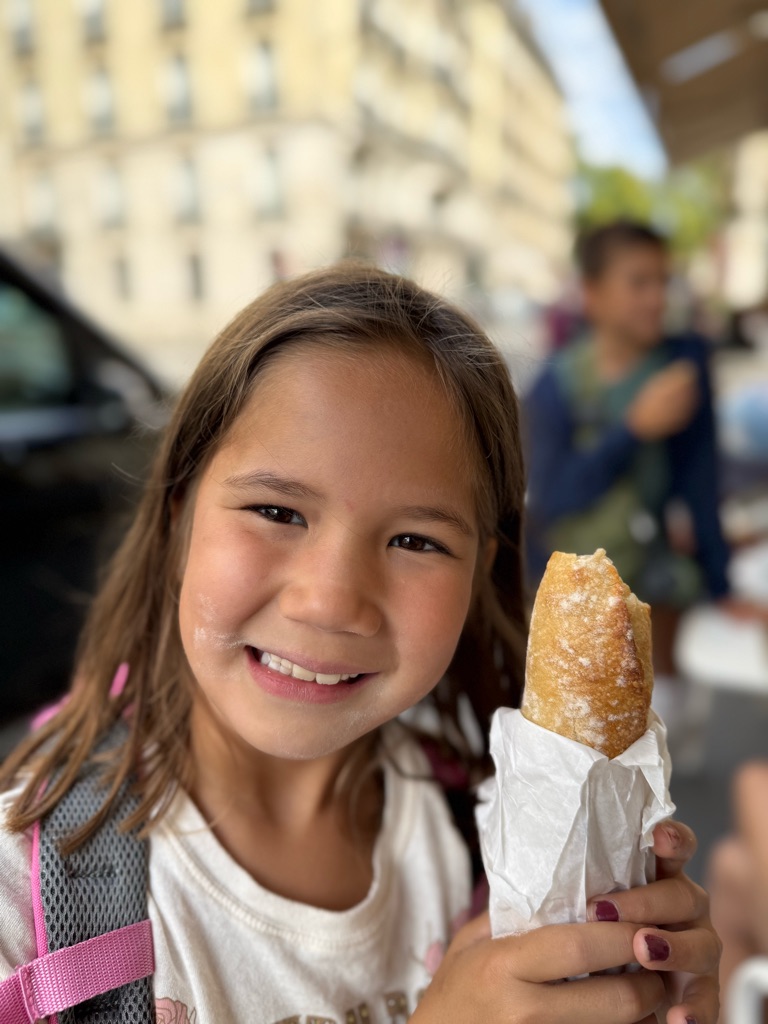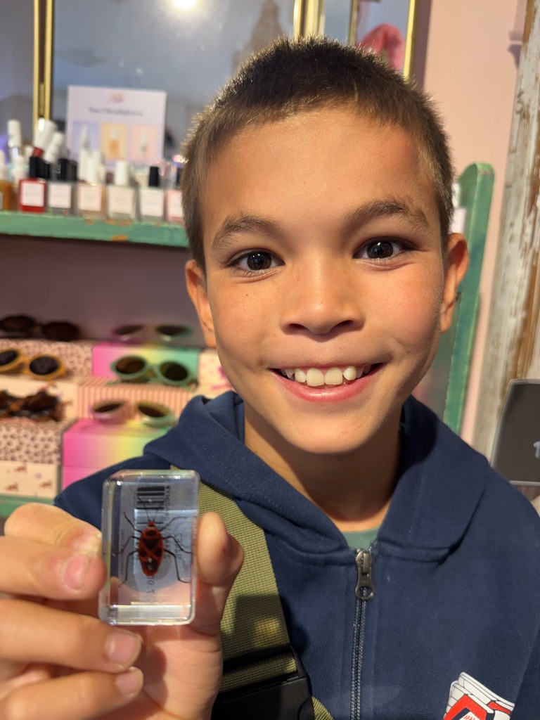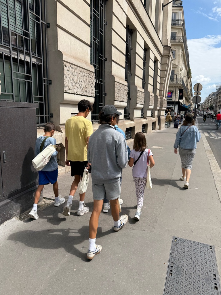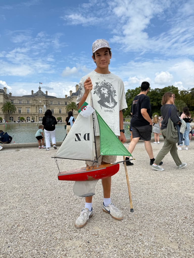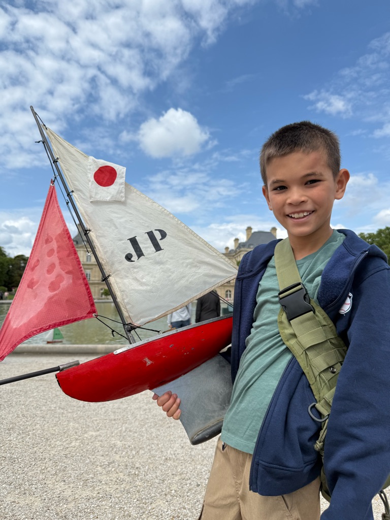 Our first destination was the Luxembourg Gardens. As we were walking, Augie found a European fire bug which was brightly colored red and black. He subsequently was stung by a bee in his foot.
