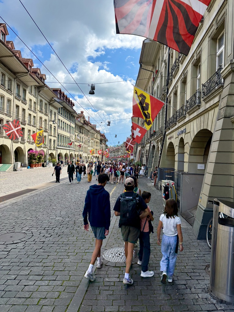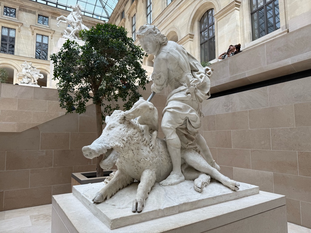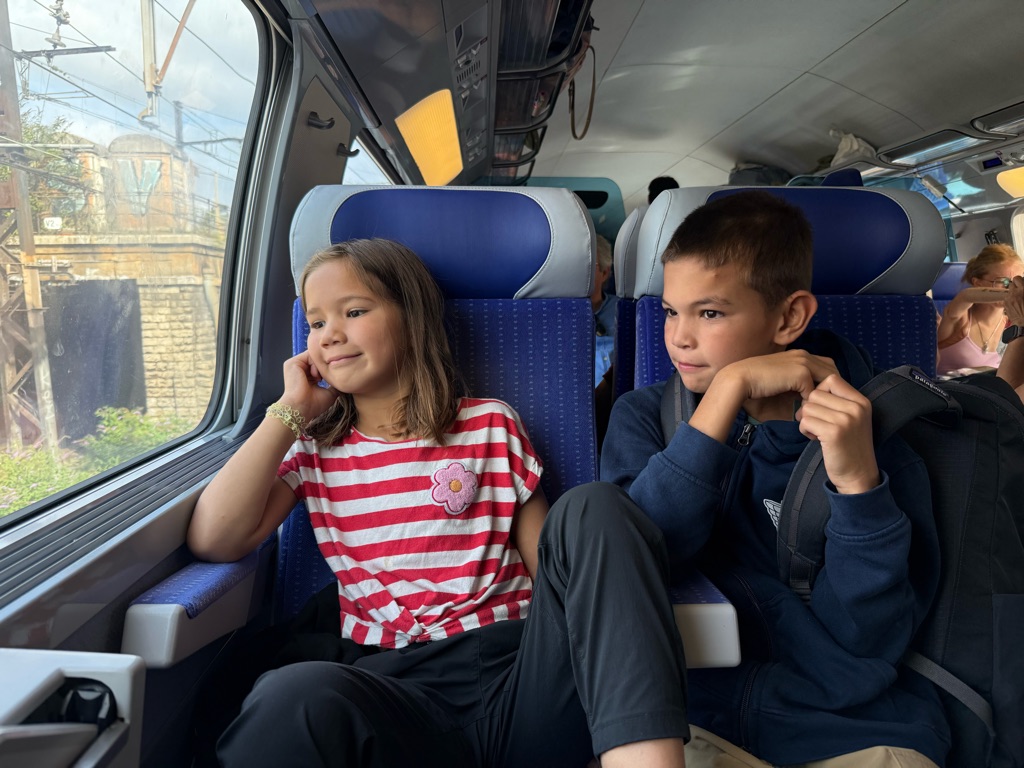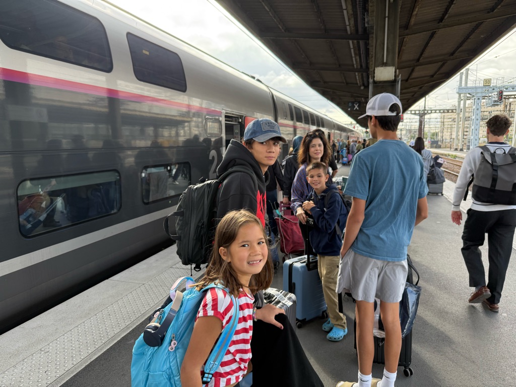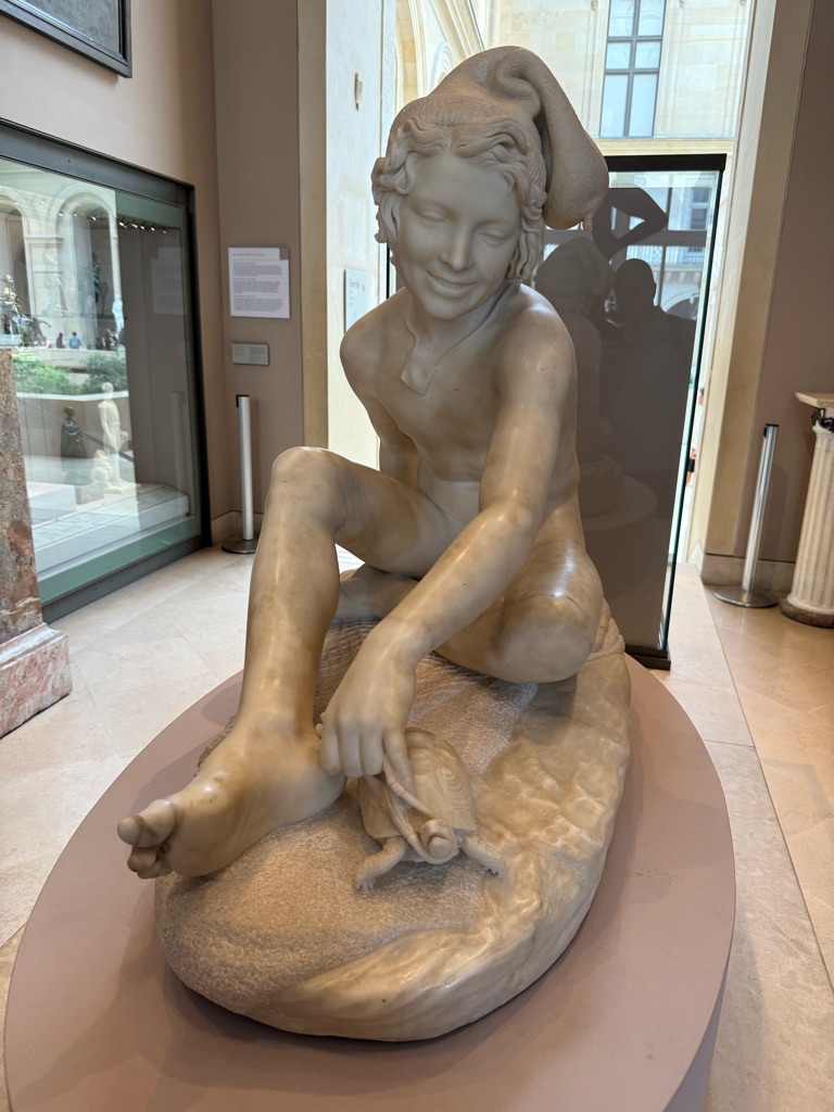 Our first destination was the Luxembourg Gardens. As we were walking, Augie found a European fire bug which was brightly colored red and black. He subsequently was stung by a bee in his foot.