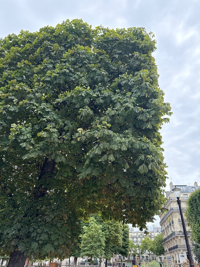 There seem to be buckeye trees everywhere in Paris. Currently they are full of spiky green fruit. I wonder if the nuts will look like ours in the fall.