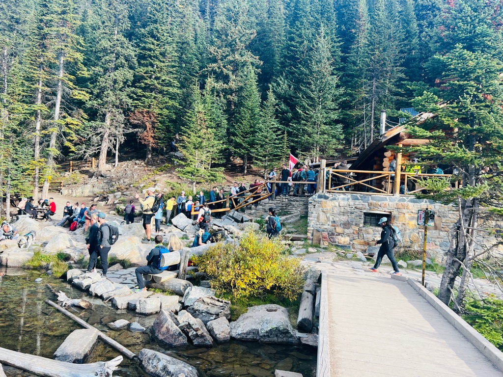 Long line for the Lake Agnes Tea House