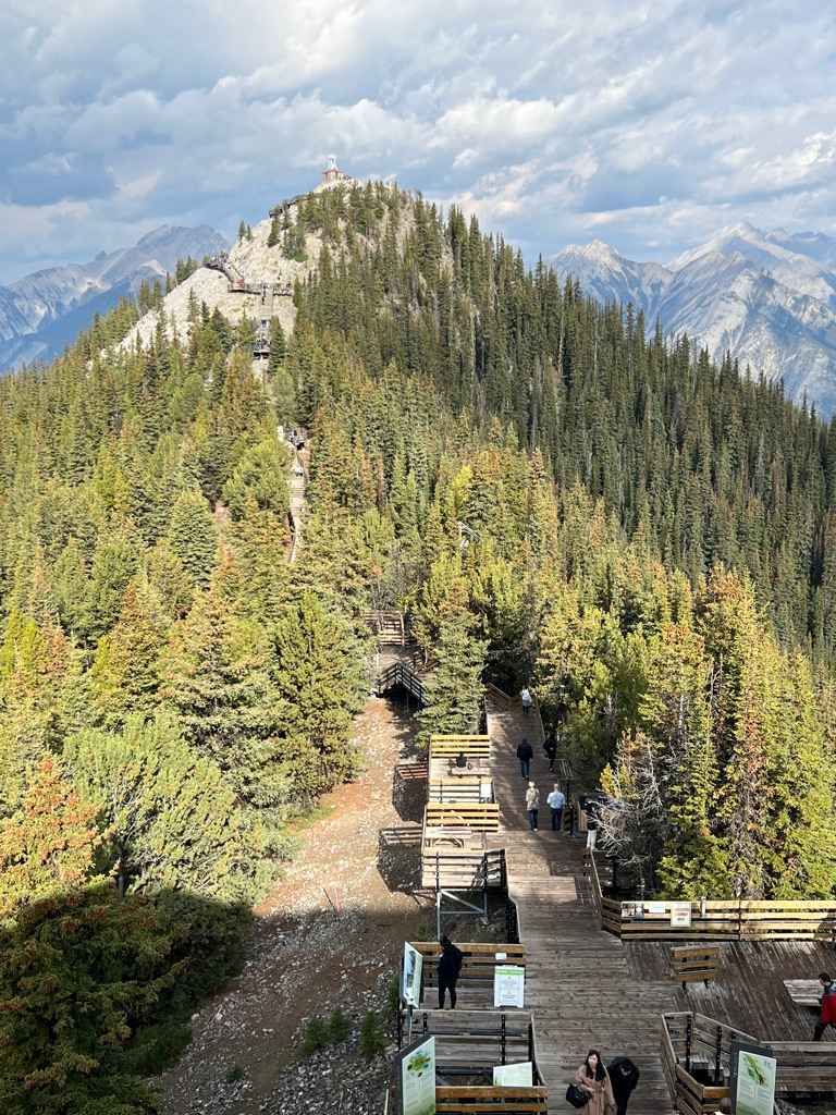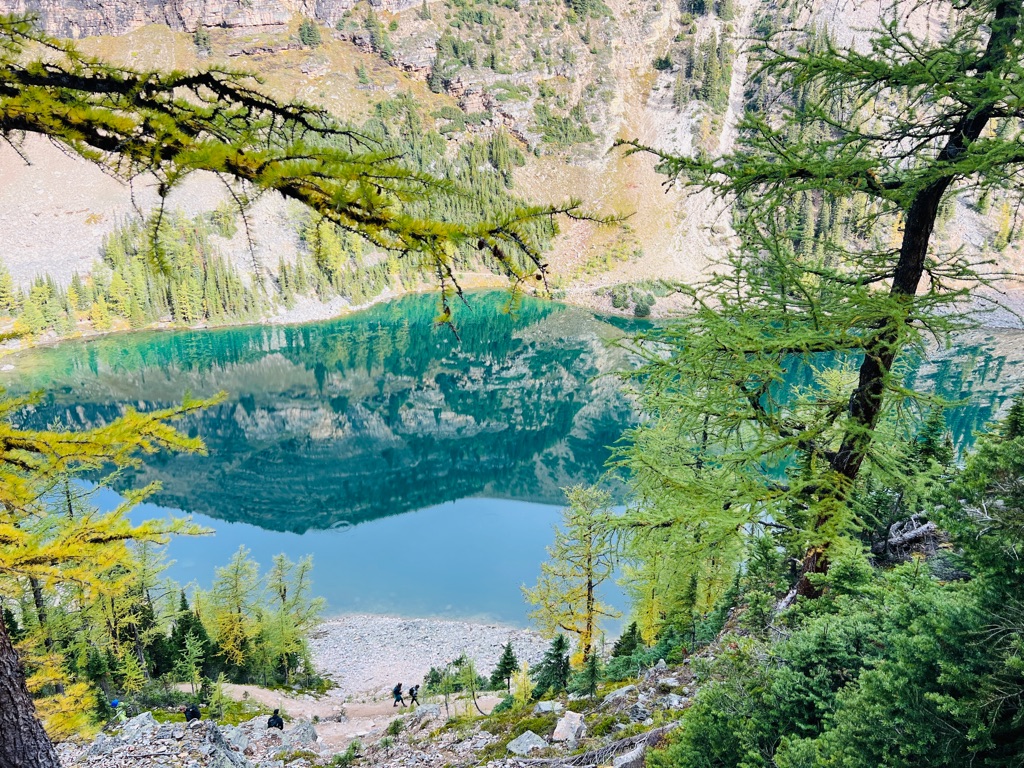 Climbing up switchbacks above Lake Agnes