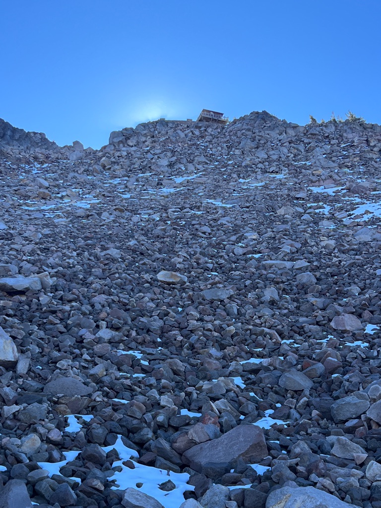 The Big Beehive (bright bulgy lump) in the background is our goal for today