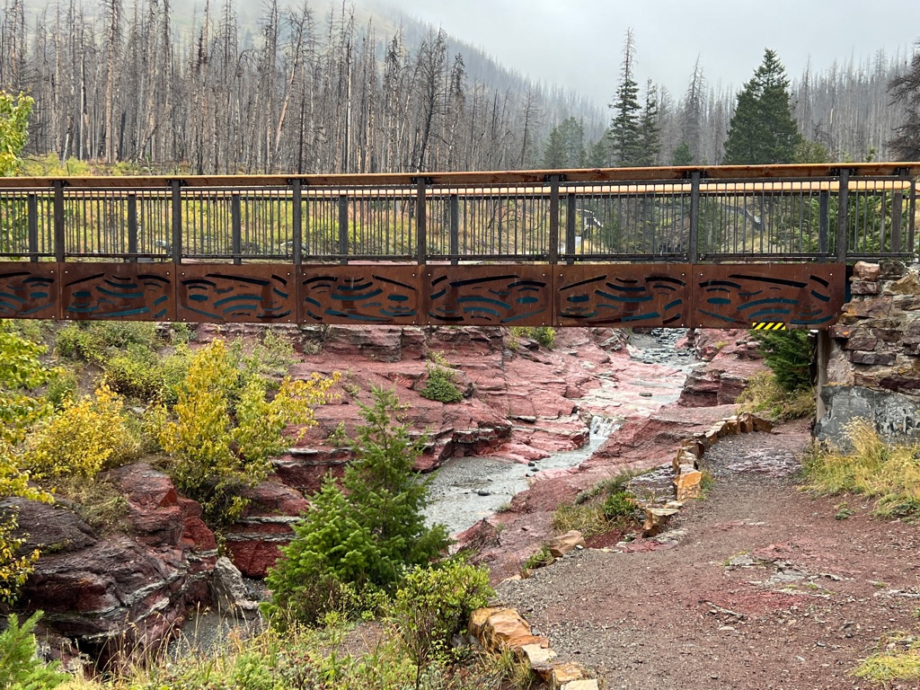 Bridge to the lodge- a shuttle bus picks the guests up at a parking lot up the road and drives them over