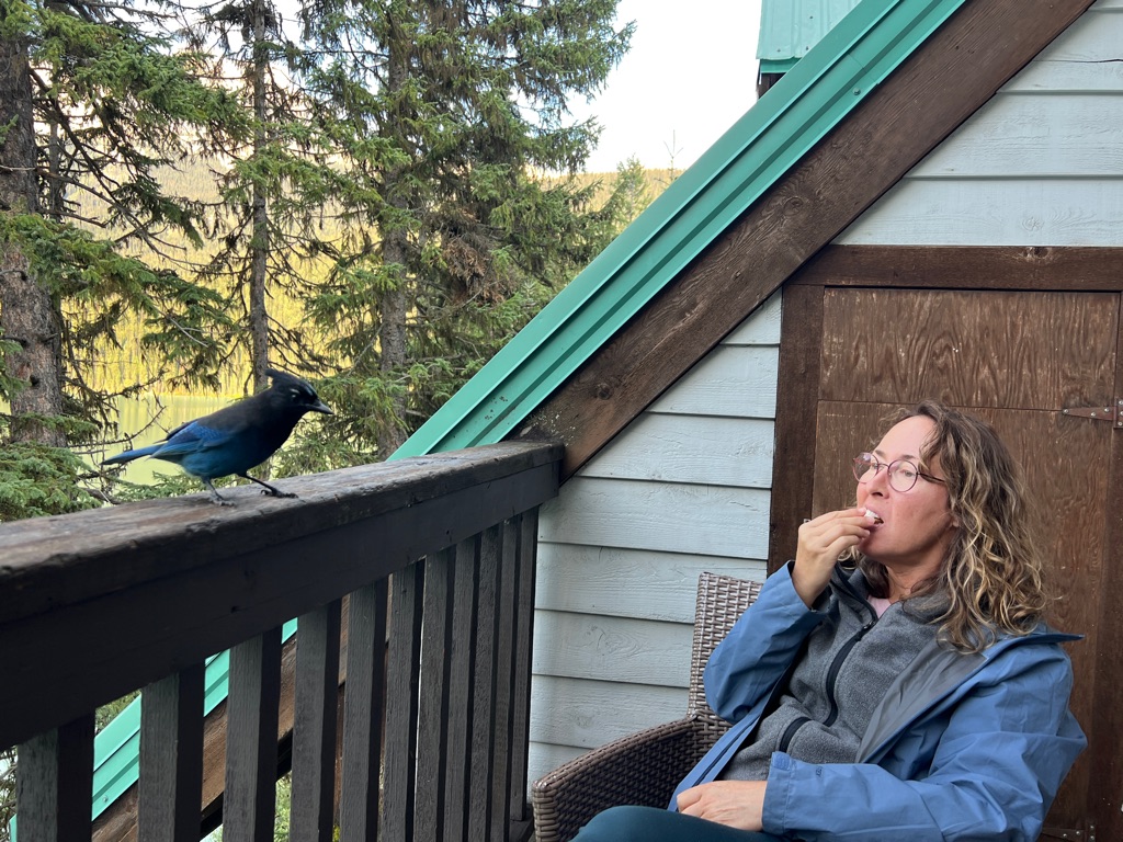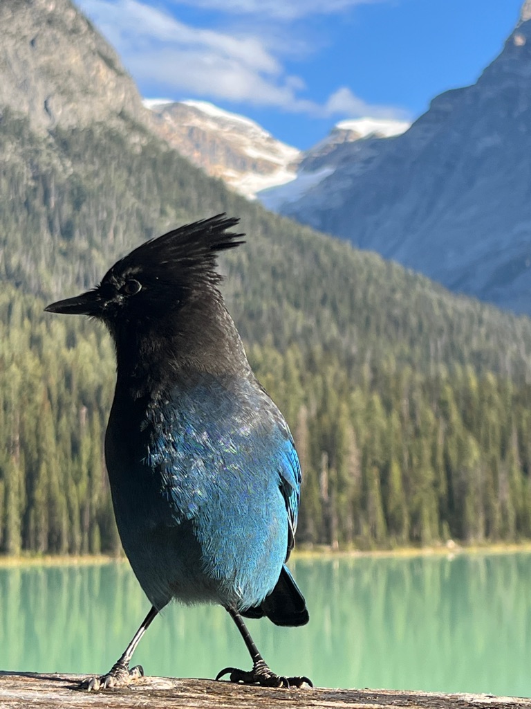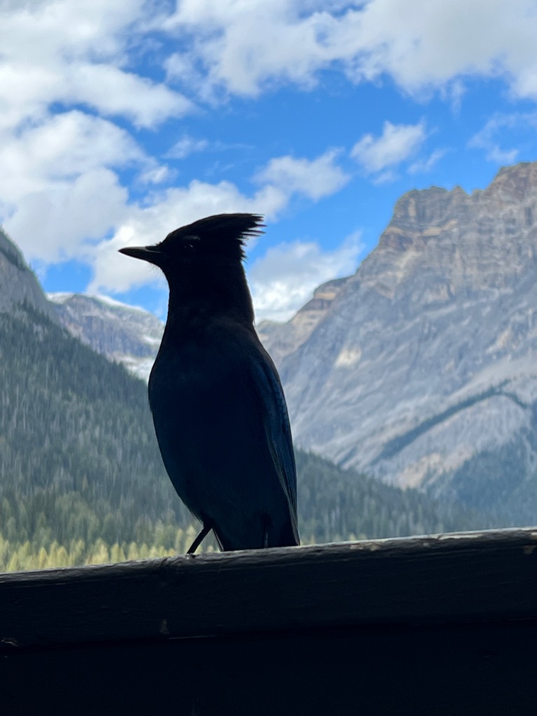 Stellar’s Jay that likes to hang out on our deck