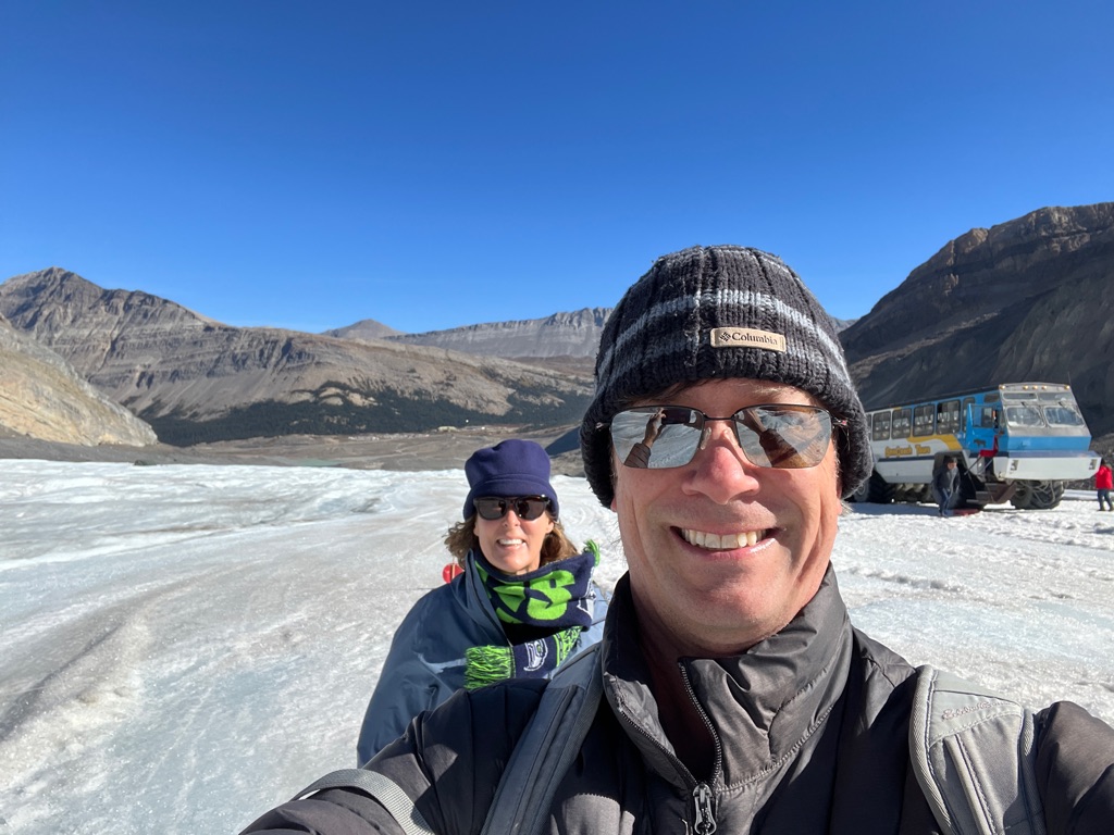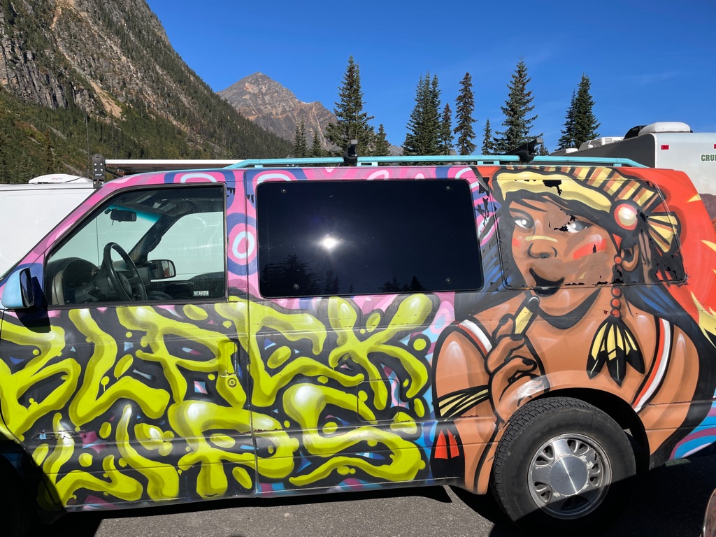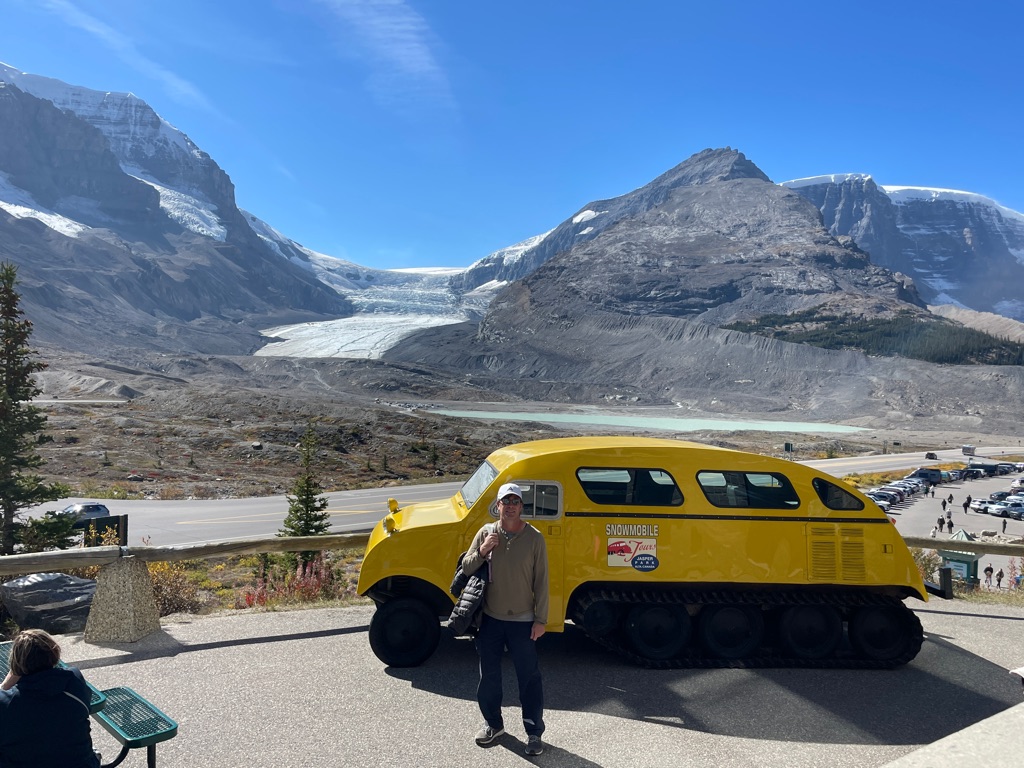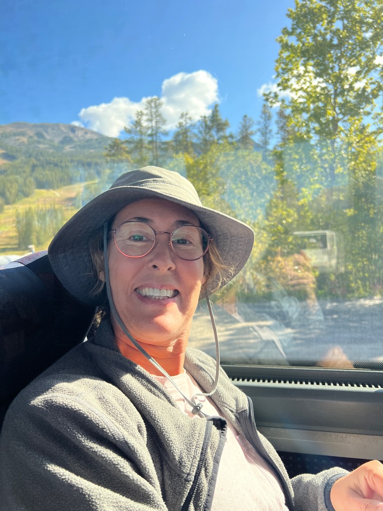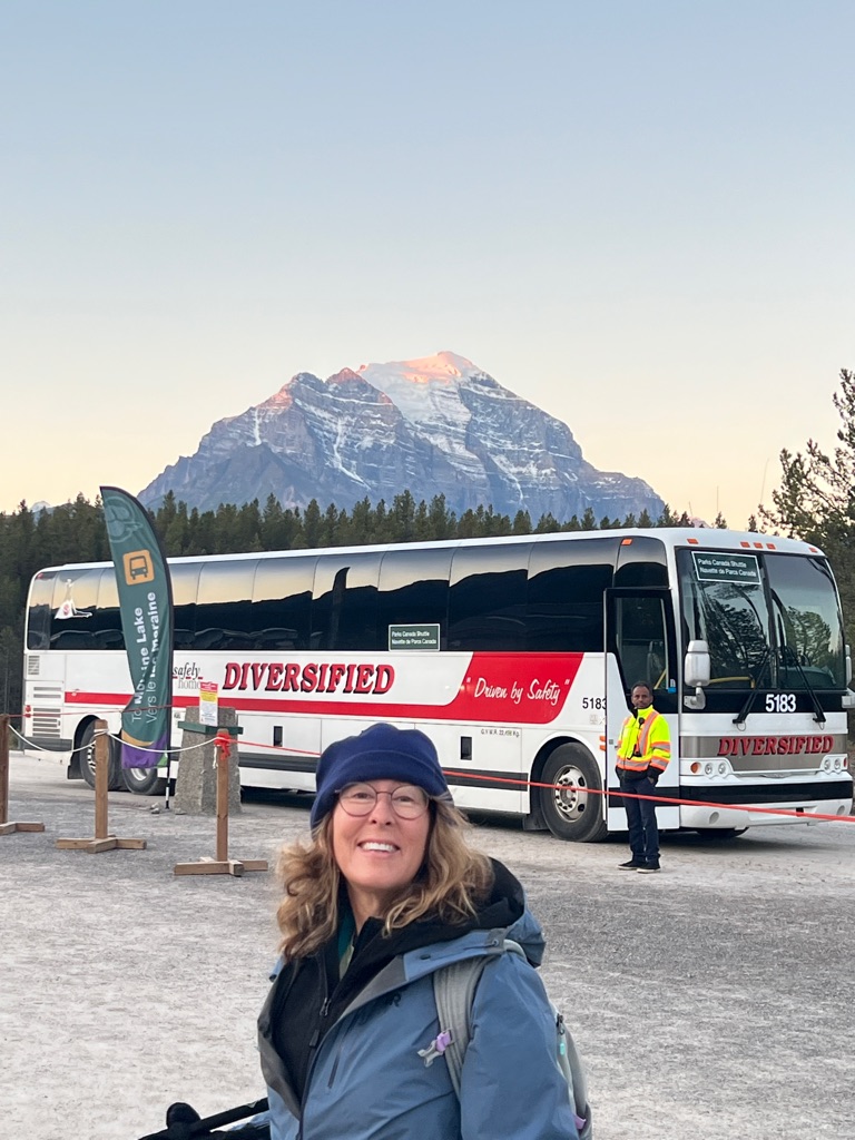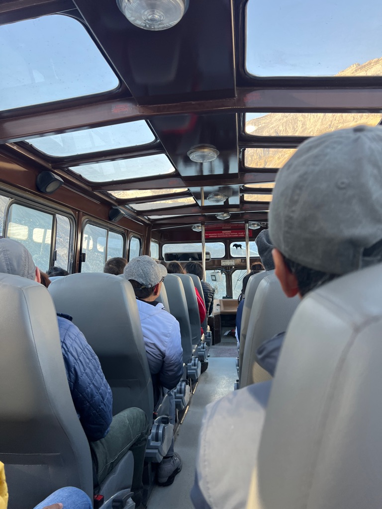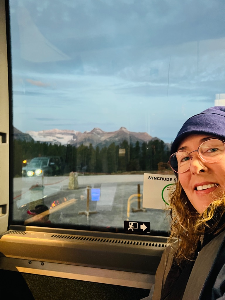 On the shuttle bus to go to Lake Louise