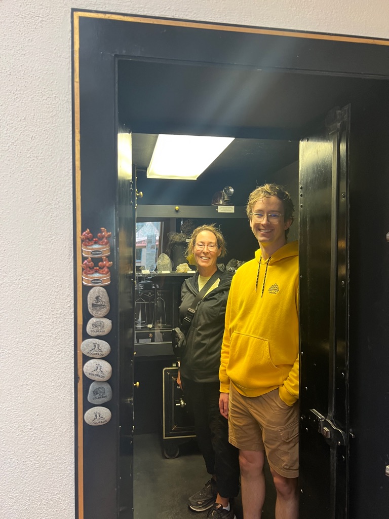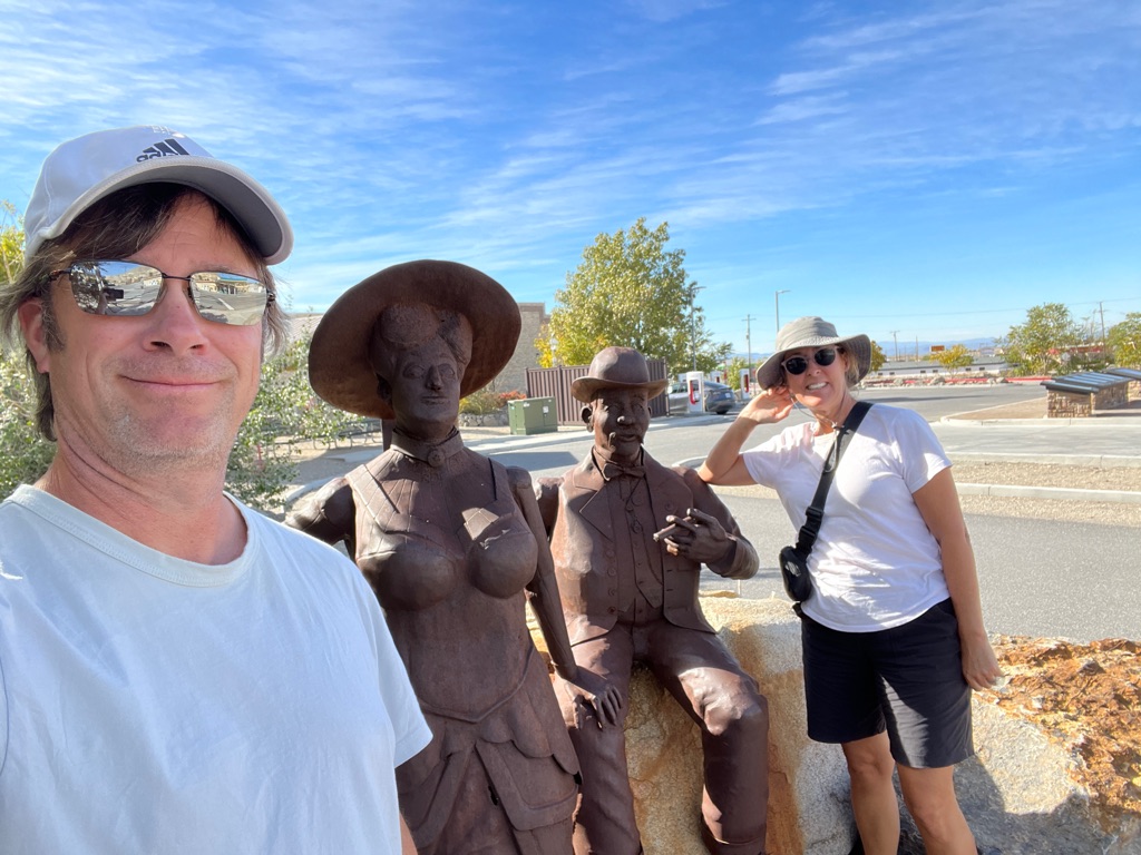 With the Tesla charging in the background, we are hanging with Jim and Bella Butler (who founded Ely because they found silver)