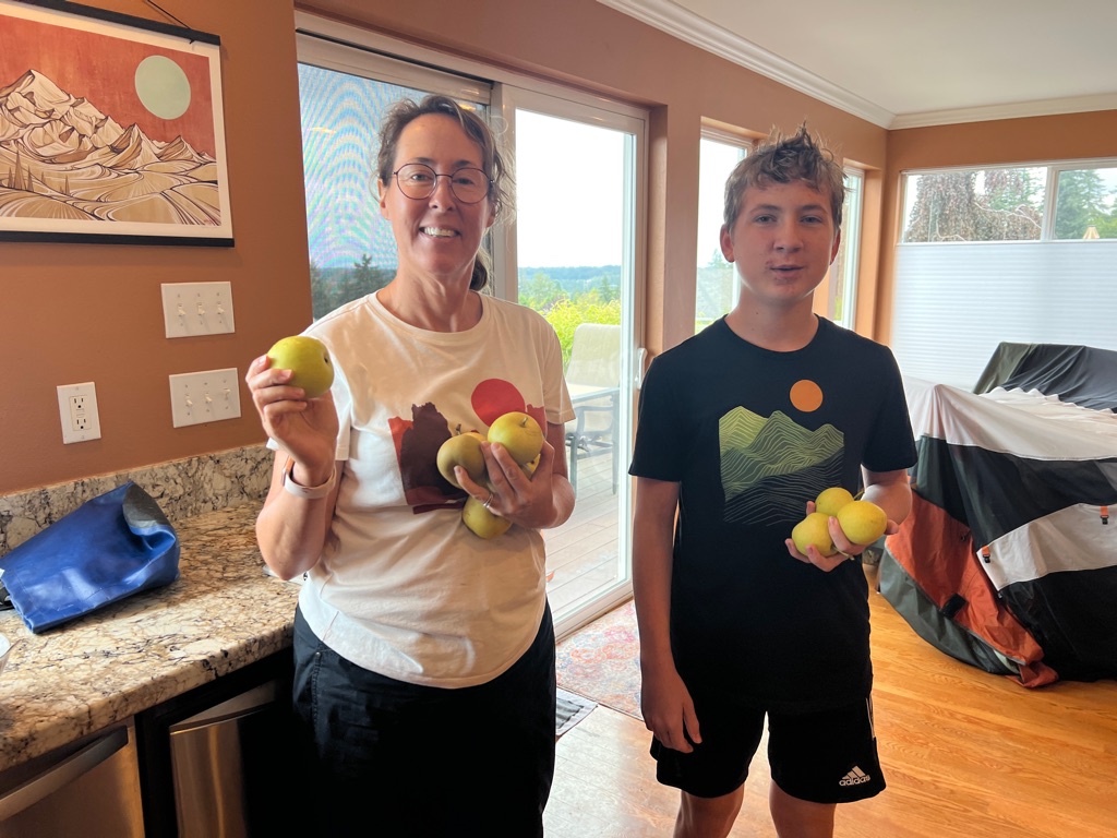 Jacqueline and Miles picked Asian Pears from the yard and made a crumble!