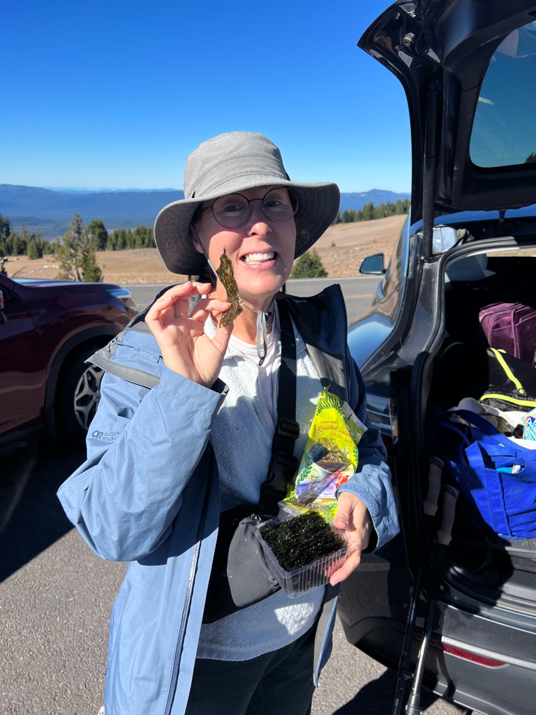 Seaweed snack before our hike up Watchman Peak