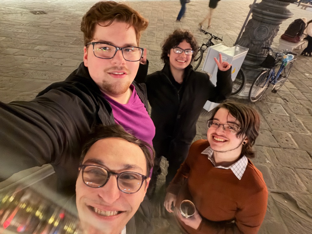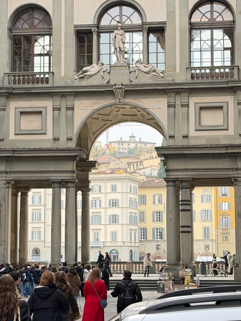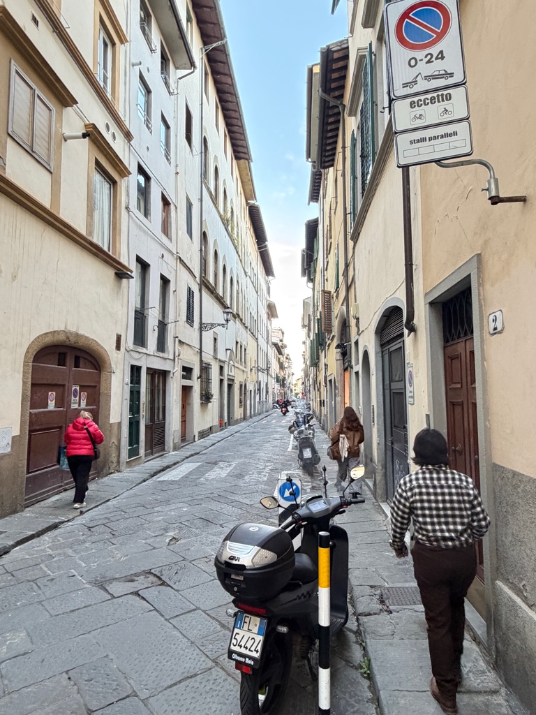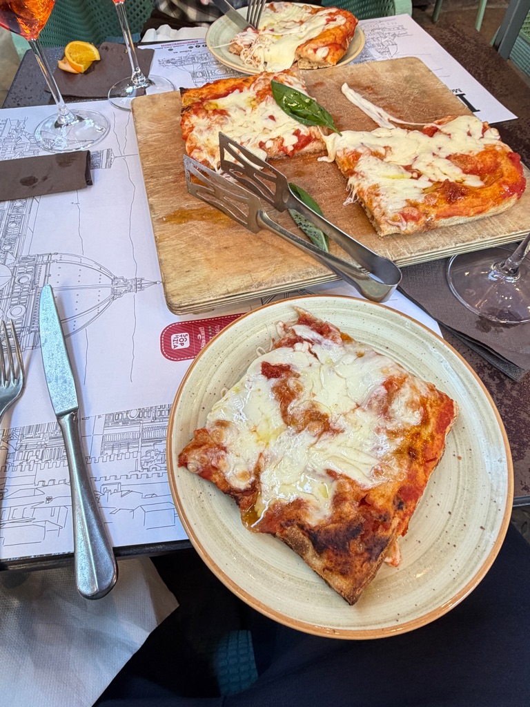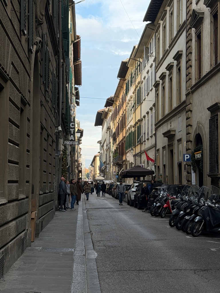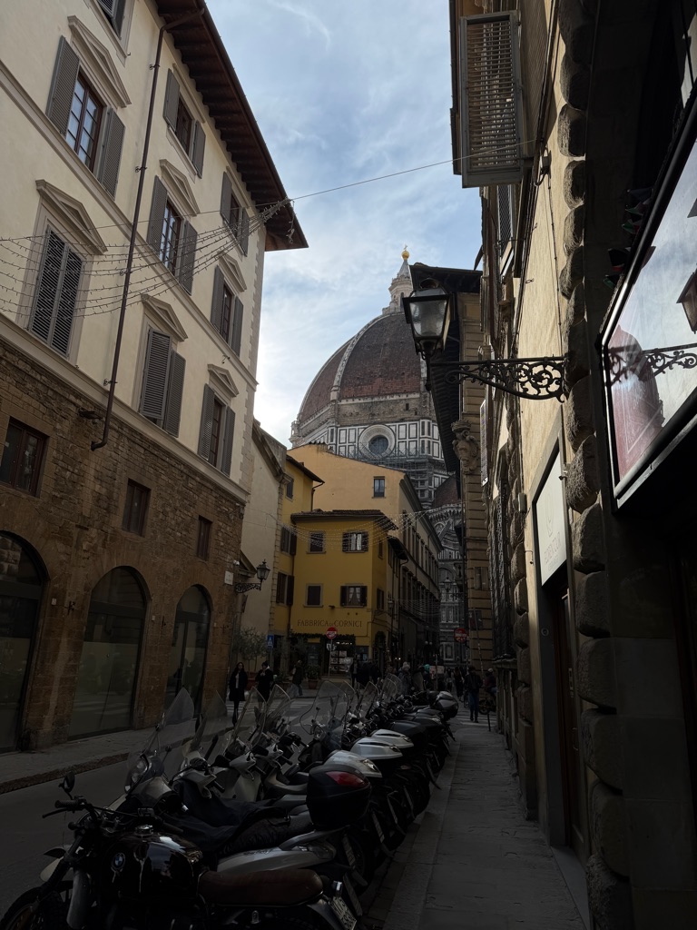 this was travel day, and I had a bunch of delays :), so it started early, getting to the airport at like 10:30 am EST, I landed in Florence 20 hours later, and my bag was still in paris. But it was expected to get in later that day, so I should get it sometime tomorrow morning. But upon landing, Me and my roomate met up at baggage claim, and then got a taxi, after filing the fact my bag was missing, we have a very energetic woman who was very kind and pointed out a lot of things to us on our drive. After checking in with our professors and the hotel itself the goal was to just stay awake, so we went to go get pizza and alcohol