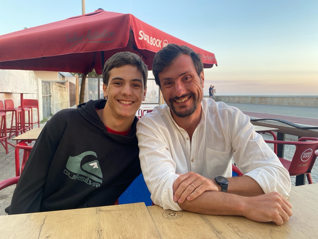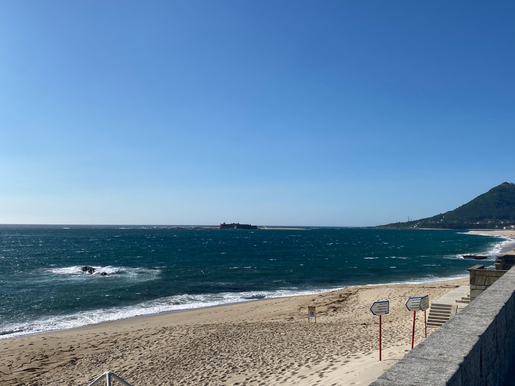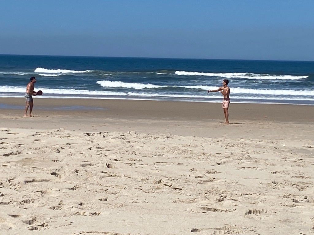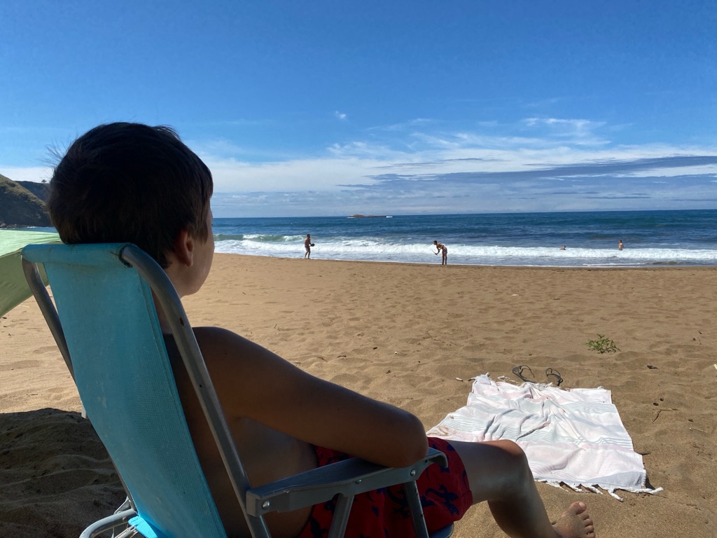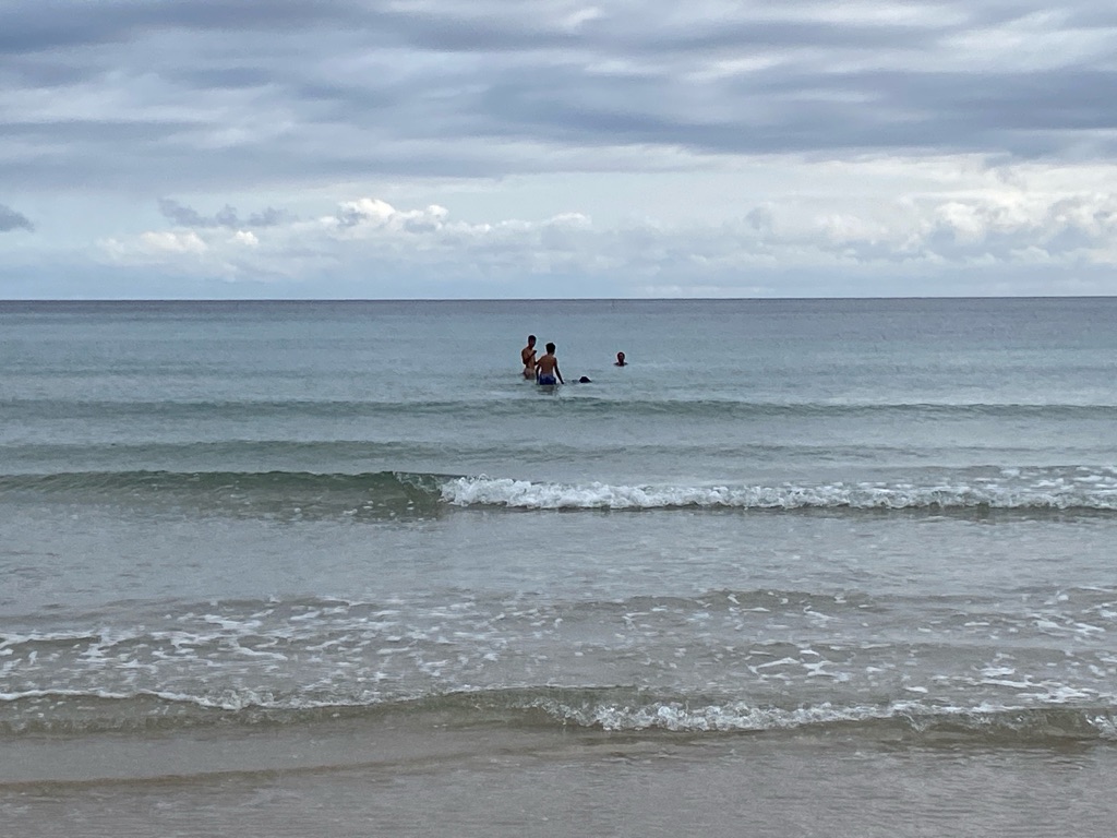 De manhã, estava algum novoeiro e fresco e os rapazes foram ver a praia.