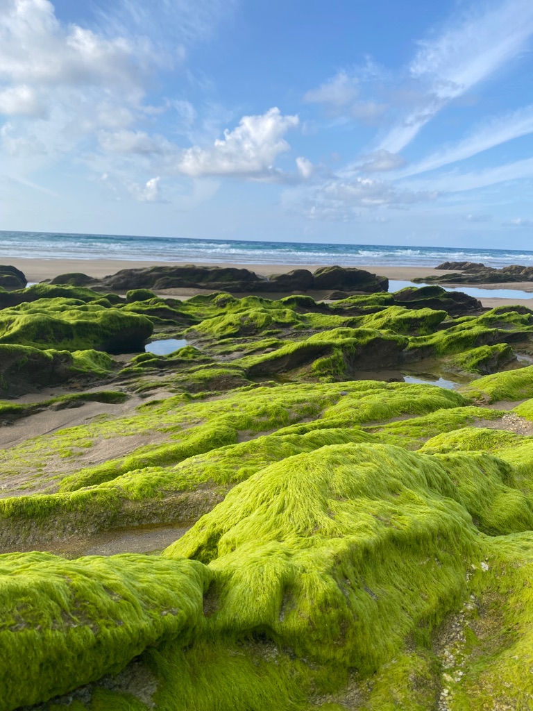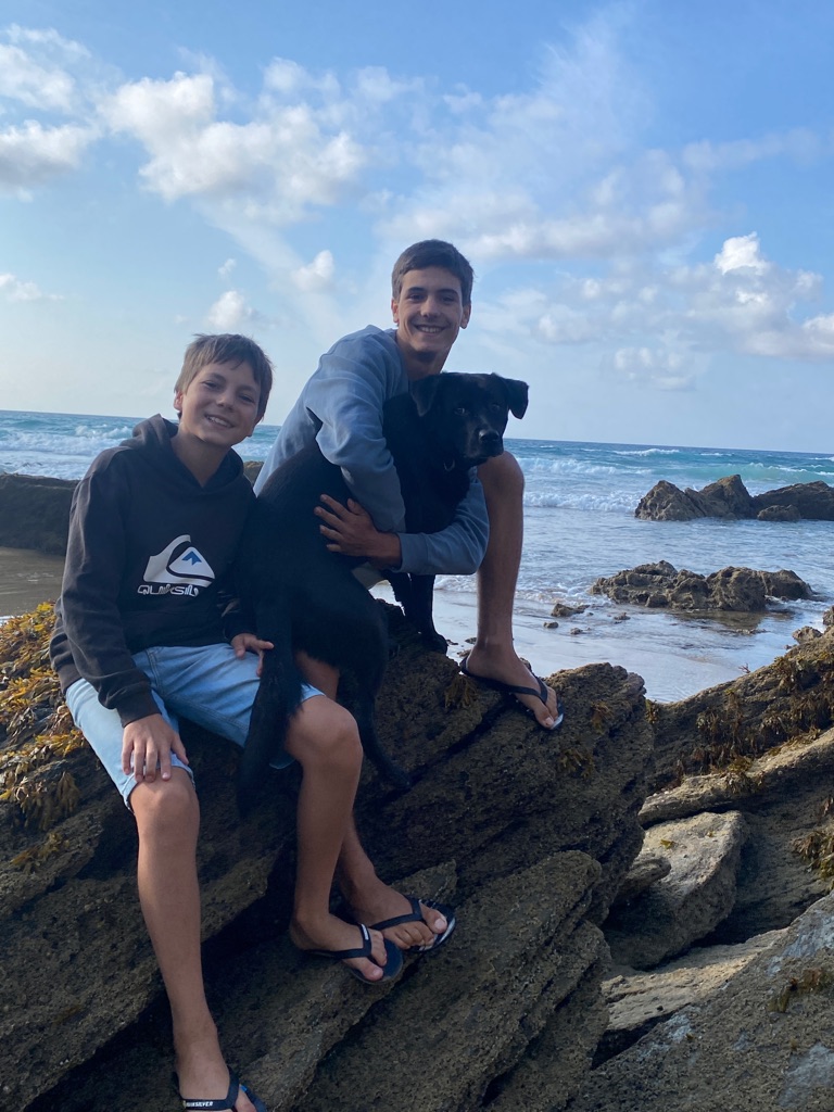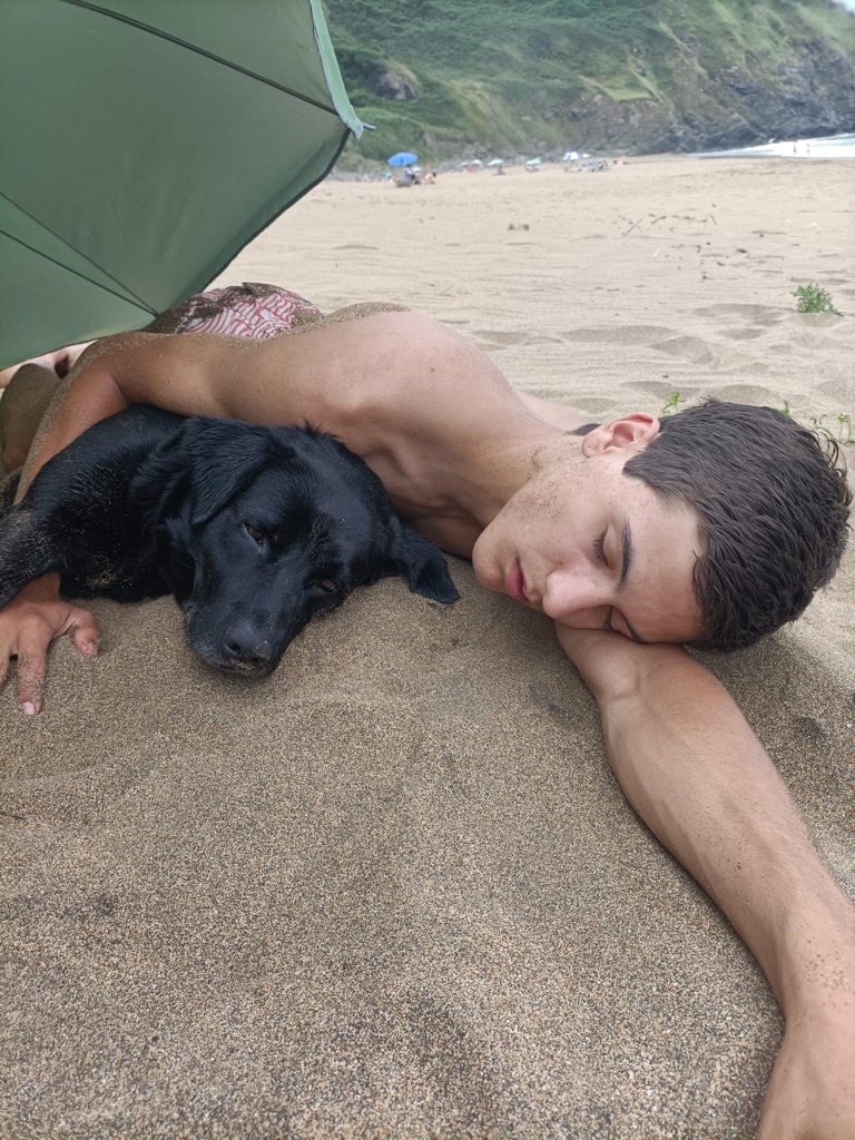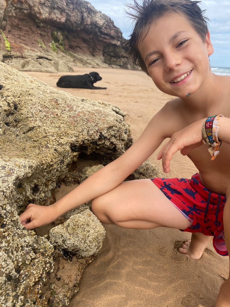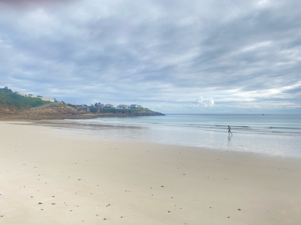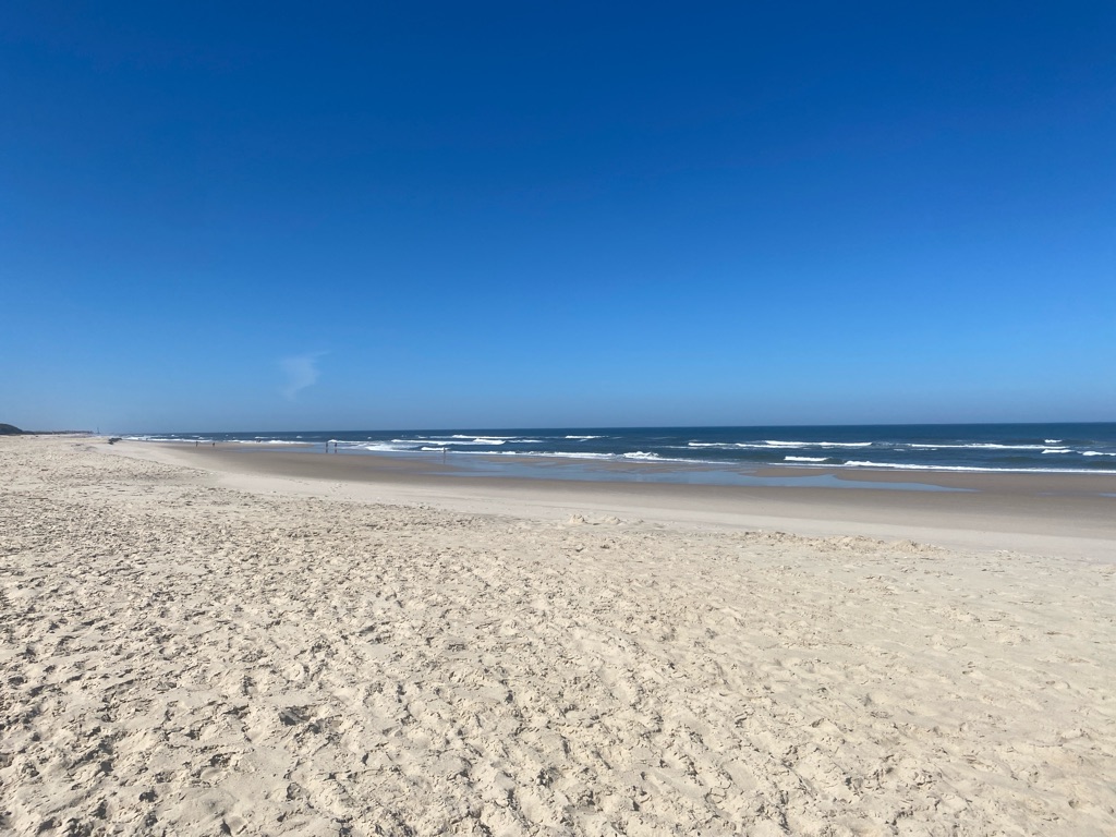 De manhã, estava algum novoeiro e fresco e os rapazes foram ver a praia.