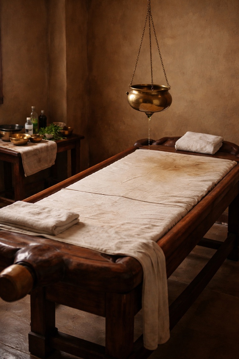 Oh this is a good one. We booked a 2 hour Ayurvedic massage with only a vague notion of what this might entail. When we got there Courtney took off her glasses and said now I can’t see so the tiny women led her around as if she were blind. They put us in the same room starting off in chairs facing each other wrapped in towels and started a head and shoulders massage so we could watch each other. Then on separate beds for a full body massage followed by a gallon of warm oil trickled over our foreheads. Then they wrapped us up, helped poor blind Courtney down off the bed and plopped us both into a small wooden hut aka sauna. Sitting on a bench with a glass door, looking like we were waiting for a bus, in our towels while people walked past looking in. Waving and mouthing ‘hello’. \240And then we are led into a side room with two rows of what look like wooden iron lungs but turn out to be steam chambers with our heads poking out while fires were lit under us and we were steamed until we yelped.