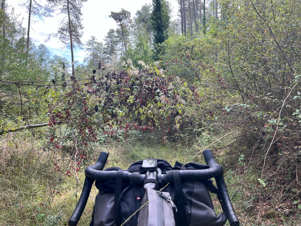 Les orages de la veille ont complètement détrempés les chemins tant est si bien que je suis scotché à la « route » en monté et en équilibre dangereux dans les descentes.