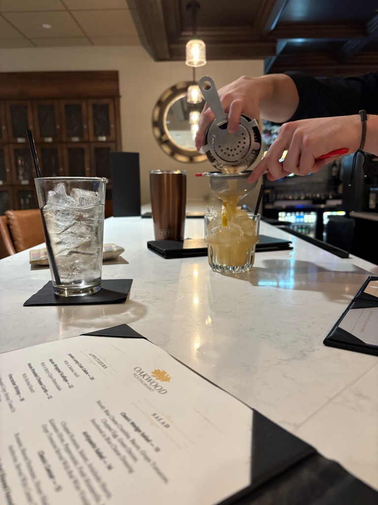 Bartender (kid..lol) crafting us a delicious cocktail with strained egg white- ooo laaa laaa - fancy.